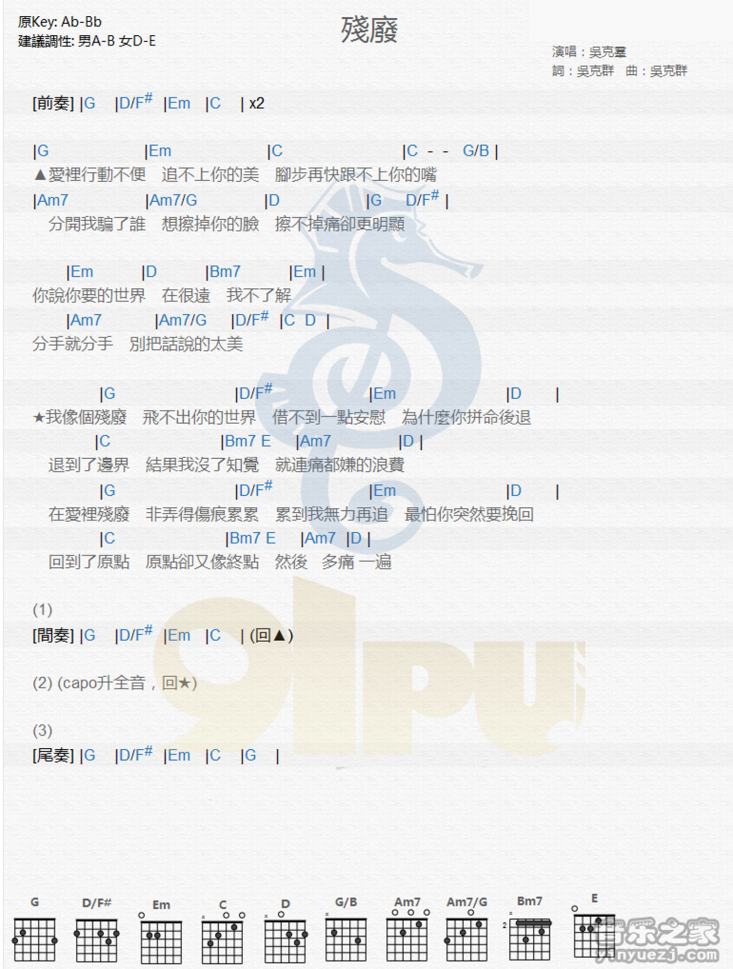 残废吉他谱 - 吴克群 - 吉他弹唱谱 - 和弦谱