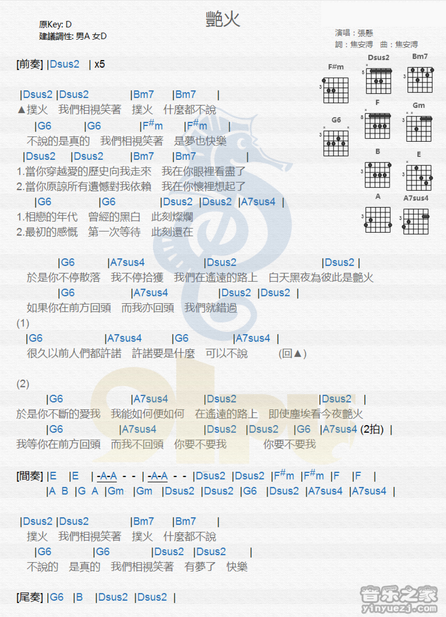 艳火吉他谱 - 张悬 - 吉他弹唱谱 - 和弦谱