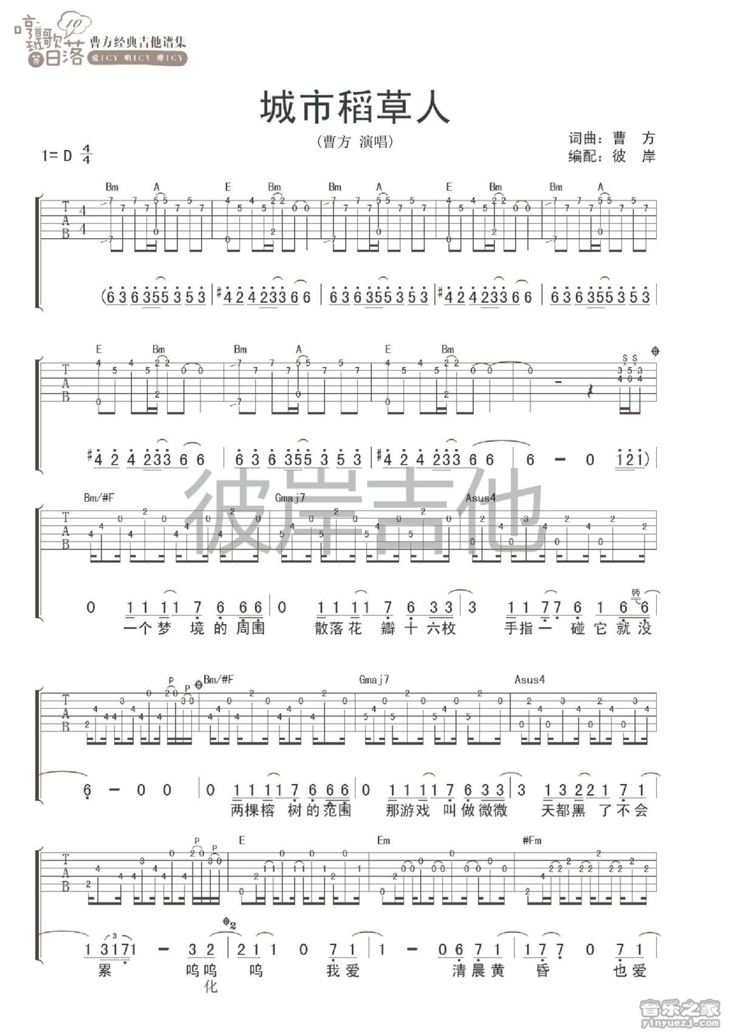 城市稻草人吉他谱 - 曹方 - D调吉他弹唱谱