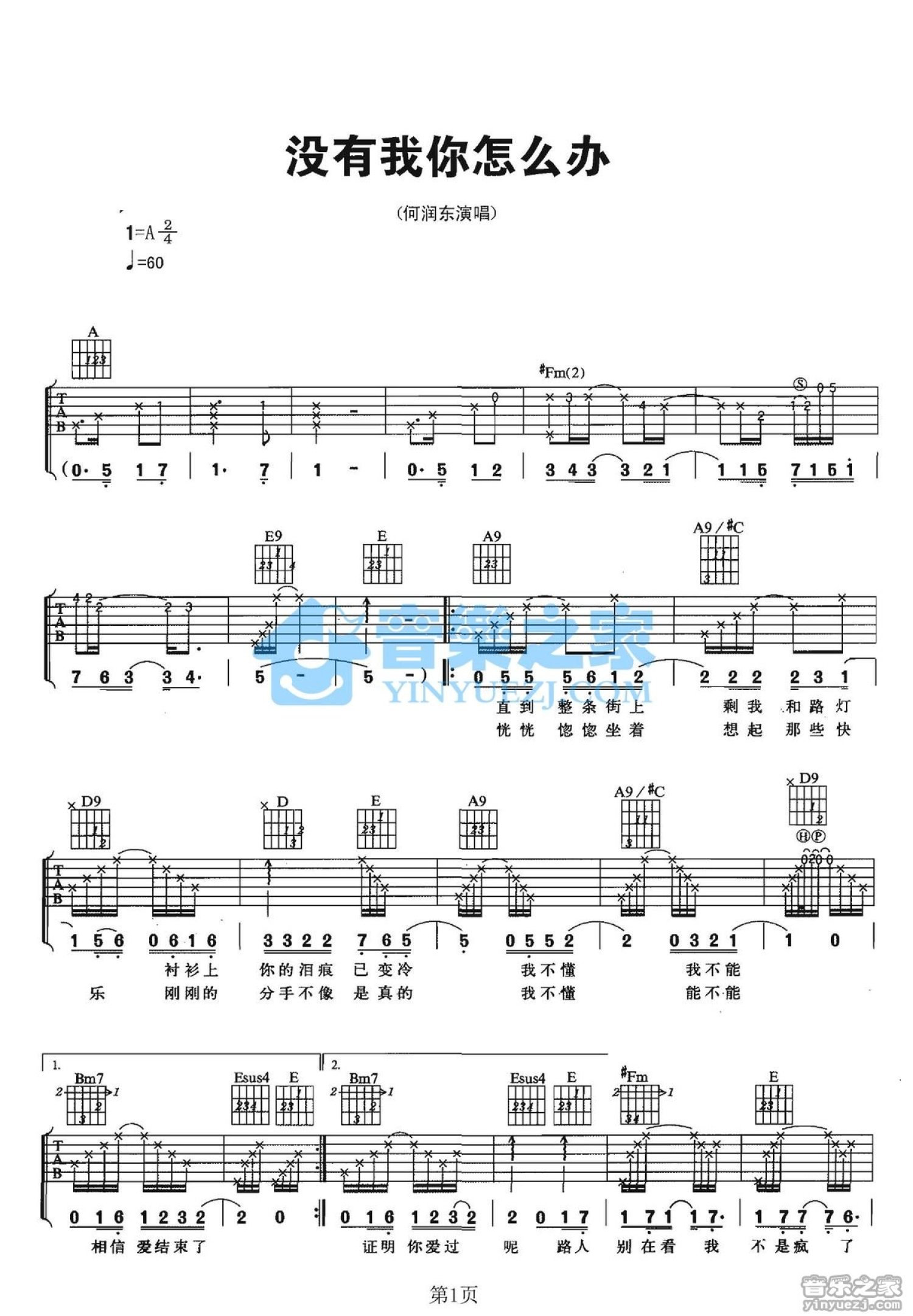 曲谱介绍: A调版《没有我你怎么办》吉他弹唱六线谱