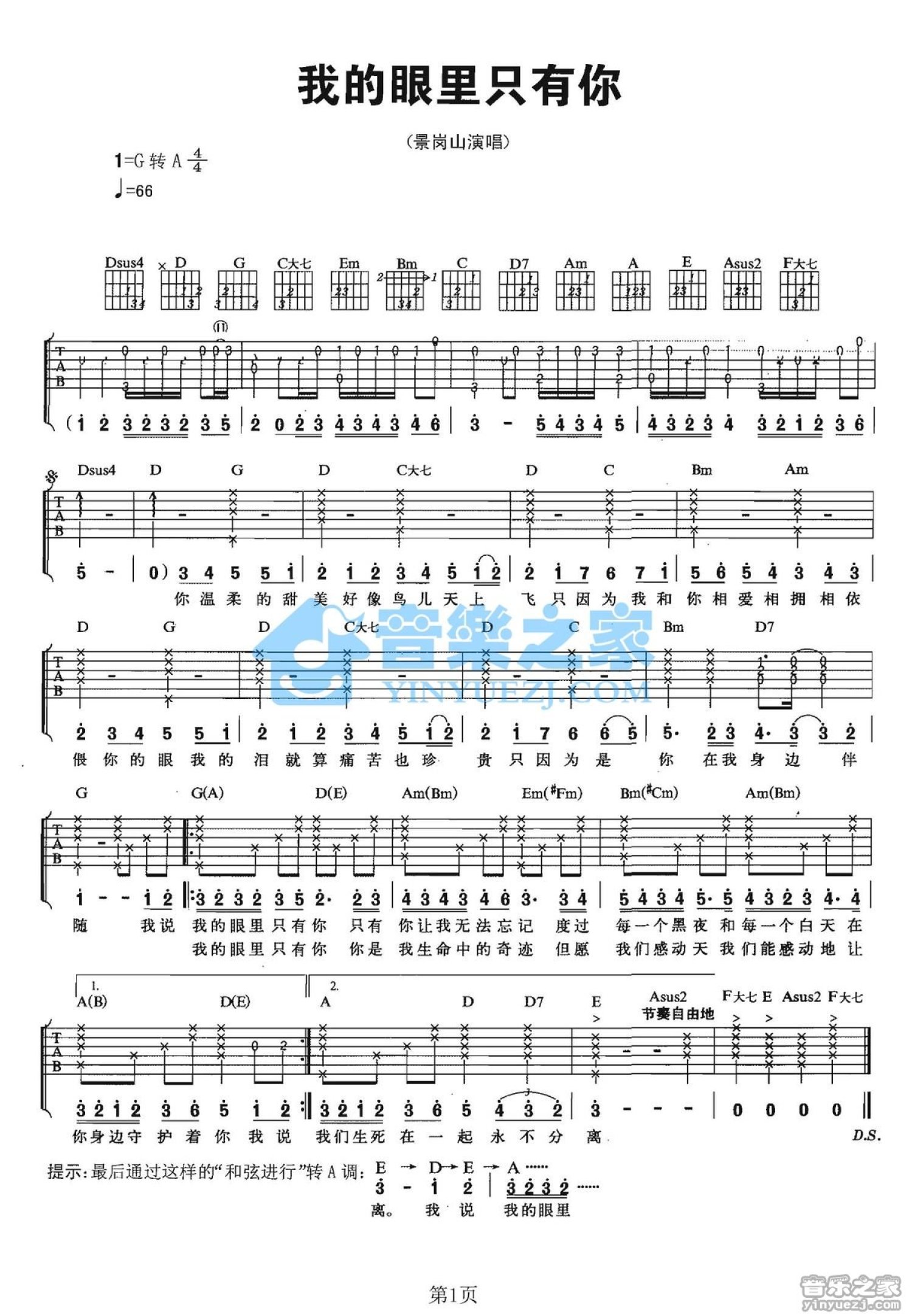 我眼里只有你吉他谱 - 景岗山 - 吉他弹唱谱