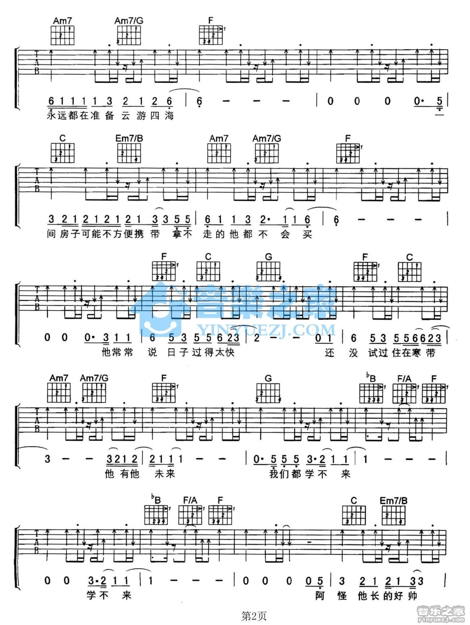 吉他弹唱C调来源:YYZJ905 浏览2021-02-06 11:11发布图谱共5页
