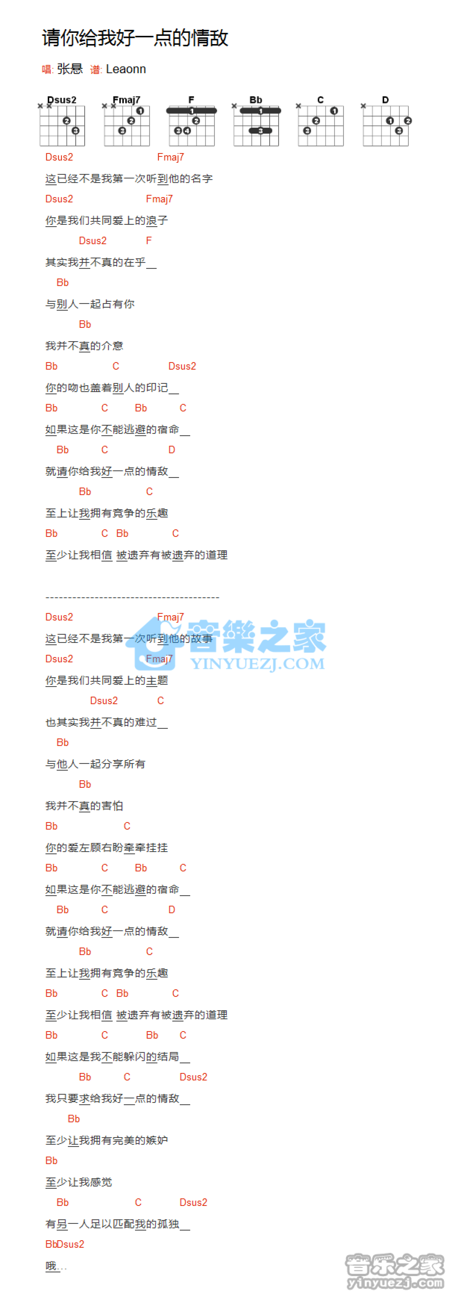 曲谱介绍: 《请你给我好一点的情敌》吉他和弦弹唱谱