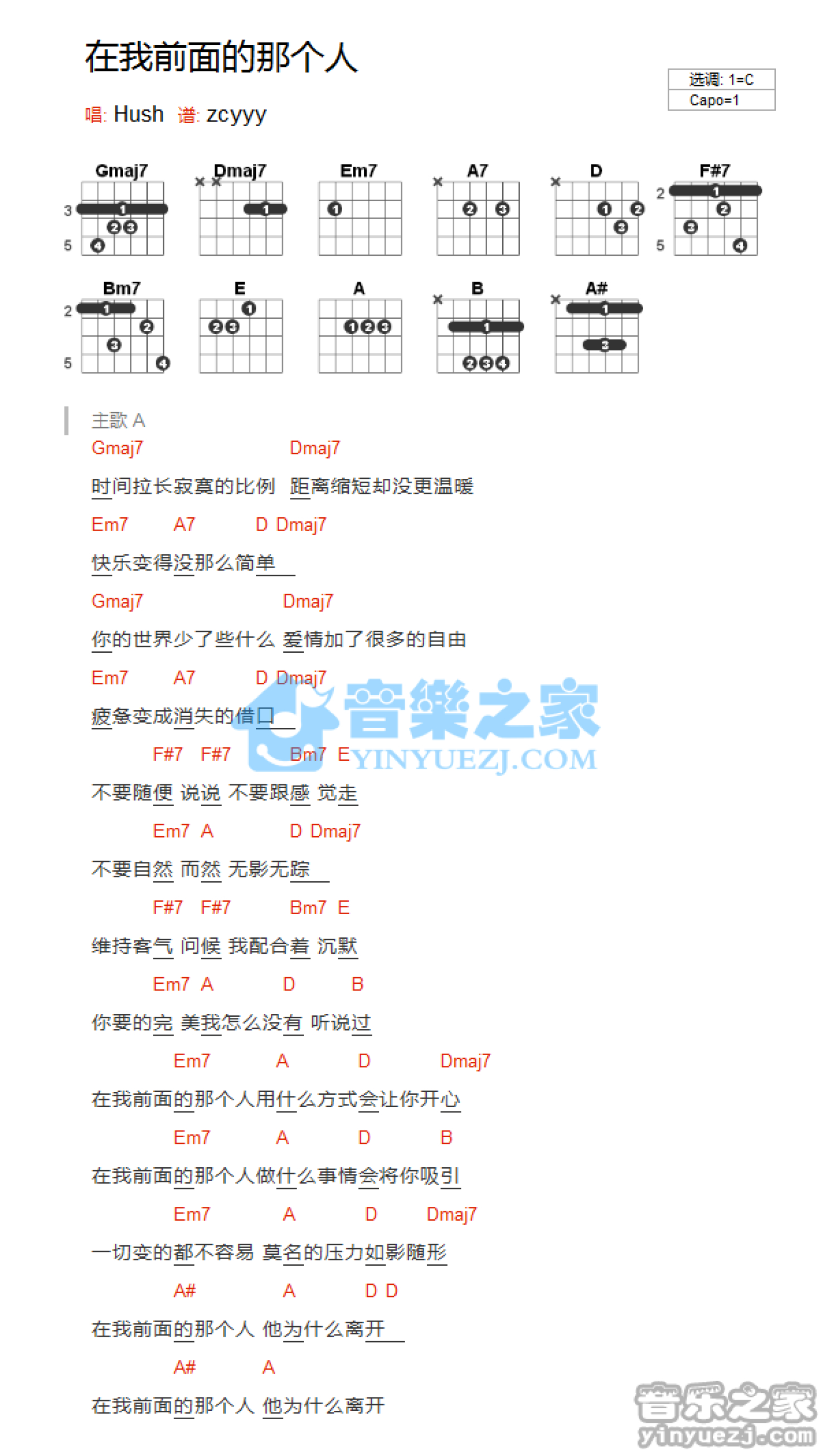 在我前面的那个人吉他谱 - Hush - C调吉他弹唱谱 - 和弦谱