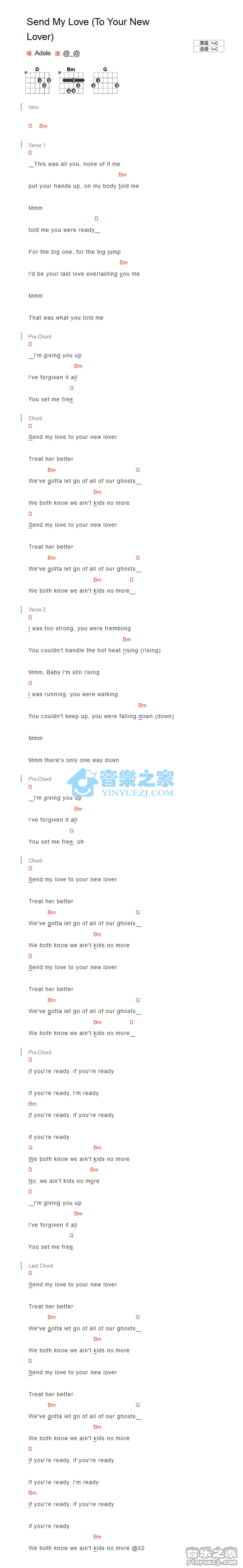 Send My Love吉他谱 - Adele - C调吉他弹唱谱 - 和弦谱