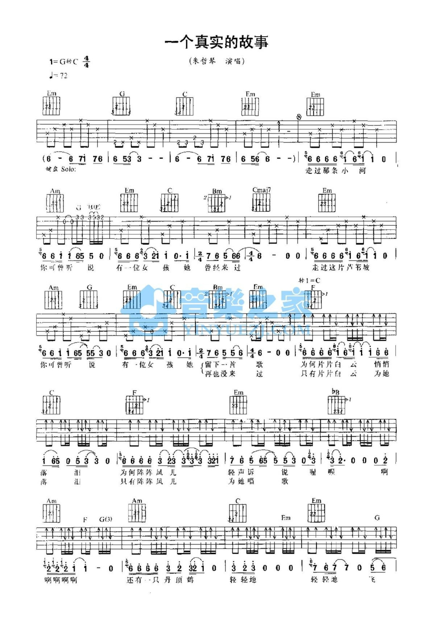 曲谱介绍: G调版《一个真实的故事》吉他弹唱六线谱