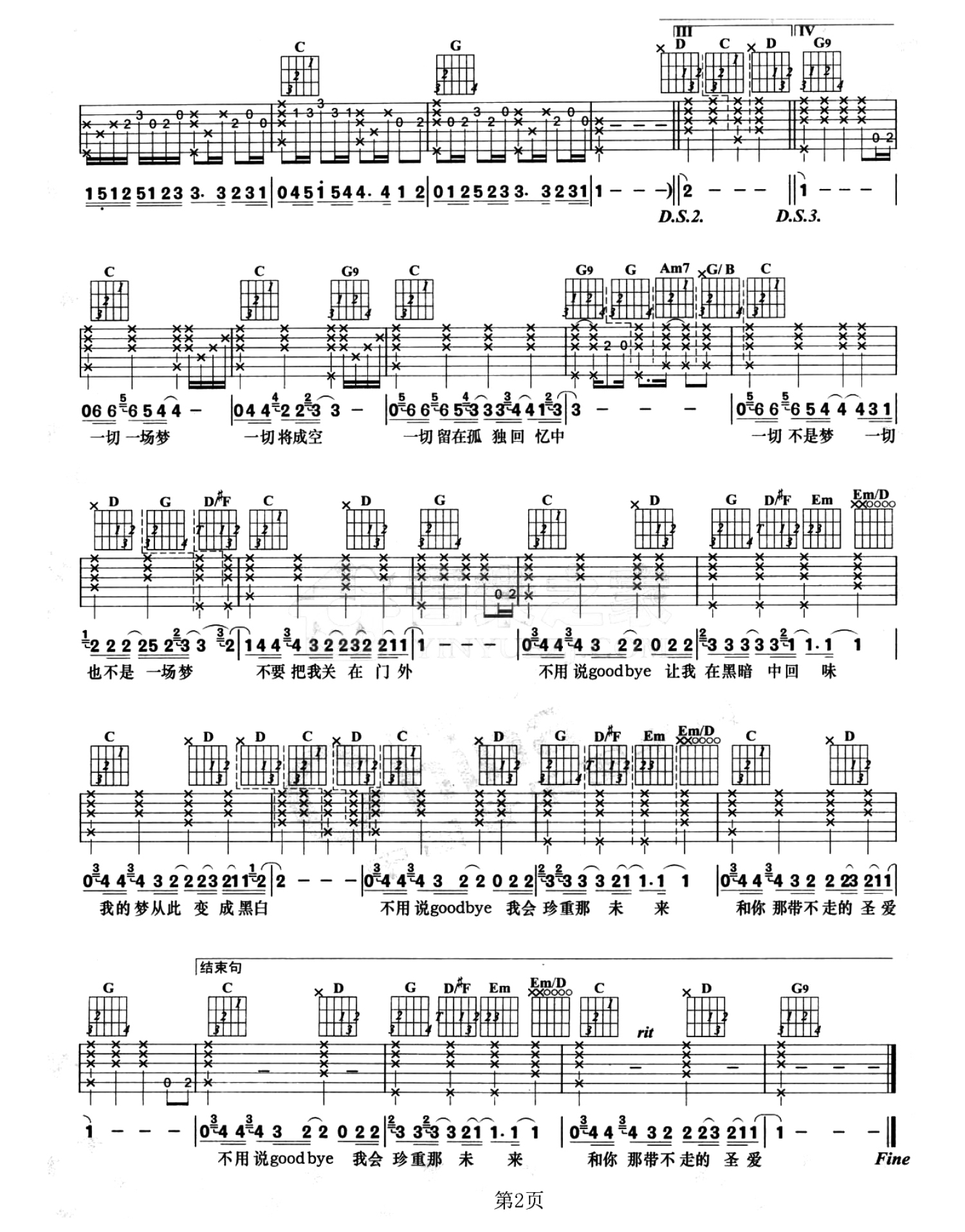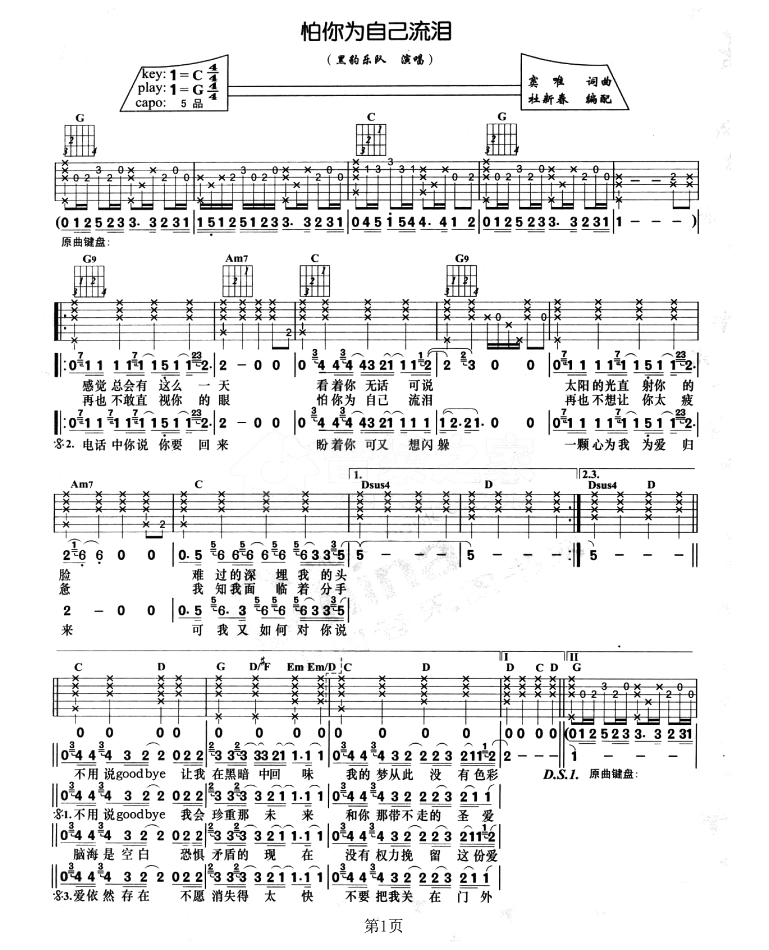 曲谱介绍: G调版《怕你为自己流泪》吉他弹唱六线谱