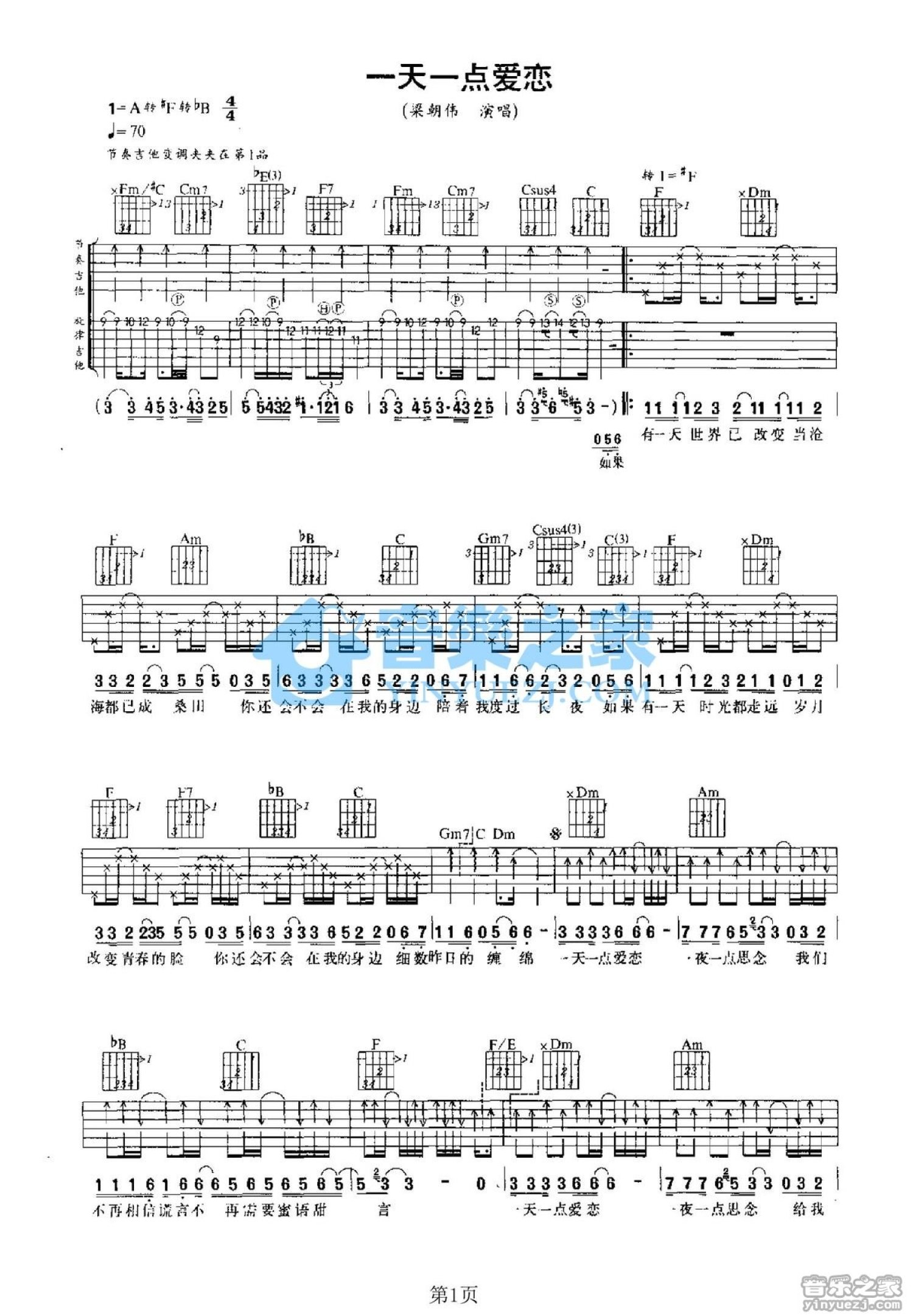 曲谱介绍: A调《一天一点爱恋》吉他弹唱六线谱