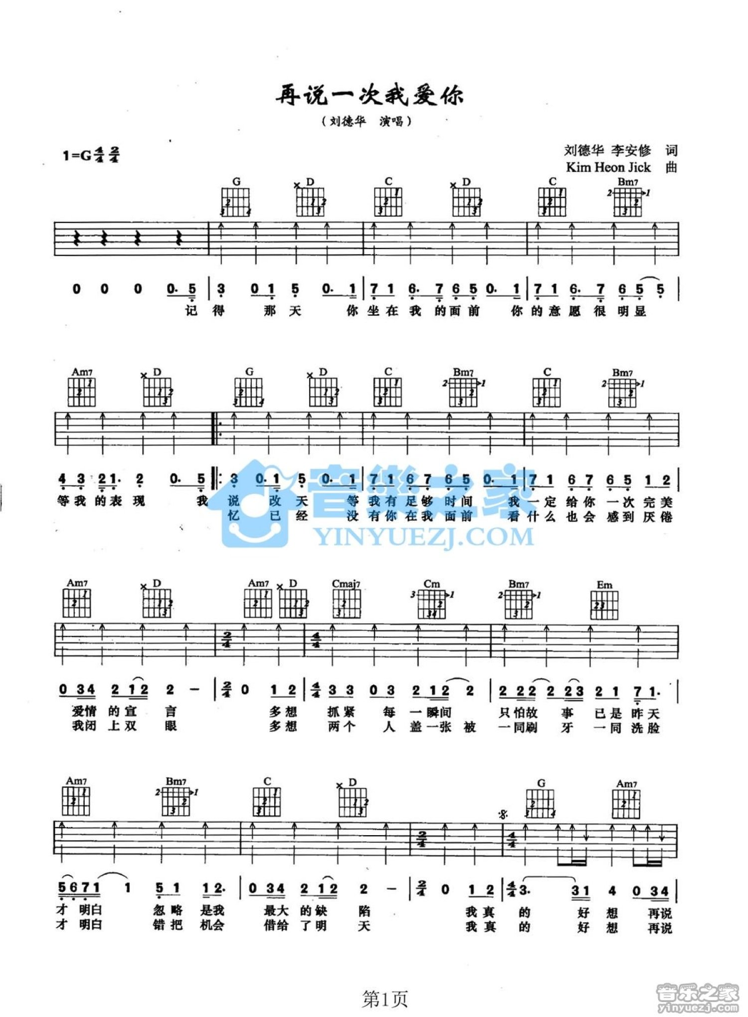再说一次我爱你吉他谱 - 刘德华 - G调吉他弹唱谱