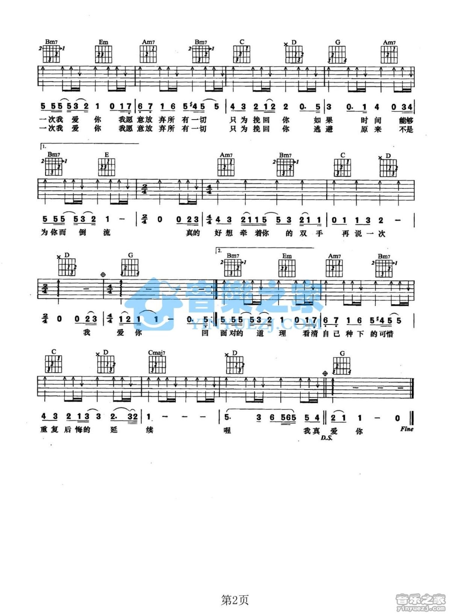 曲谱介绍: G调版《再说一次我爱你》吉他弹唱六线谱