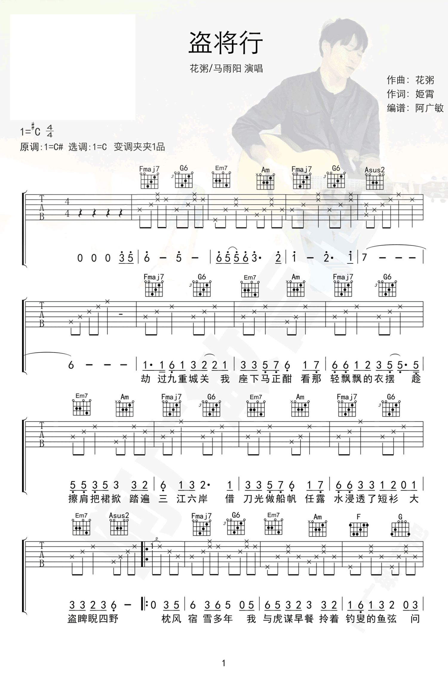 盗将行吉他谱 - 花粥马雨阳 - C调吉他弹唱谱