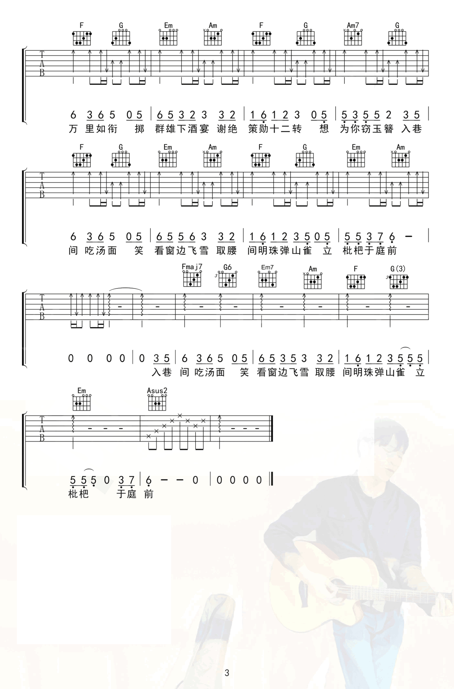 吉他弹唱C调来源:阿广敏4509 浏览2018-07-21 09:04发布图谱共3页