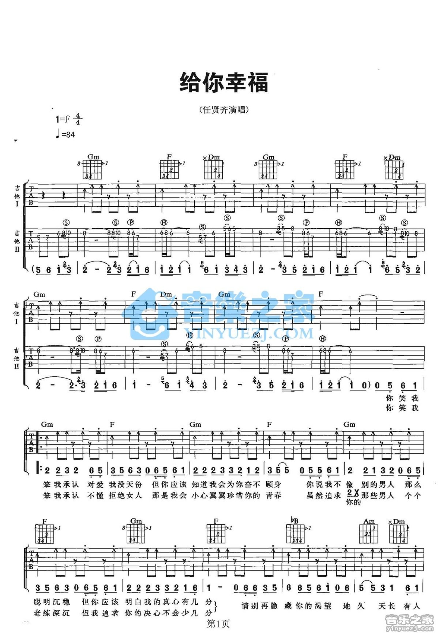 曲谱介绍: F调《给你幸福》吉他弹唱六线谱