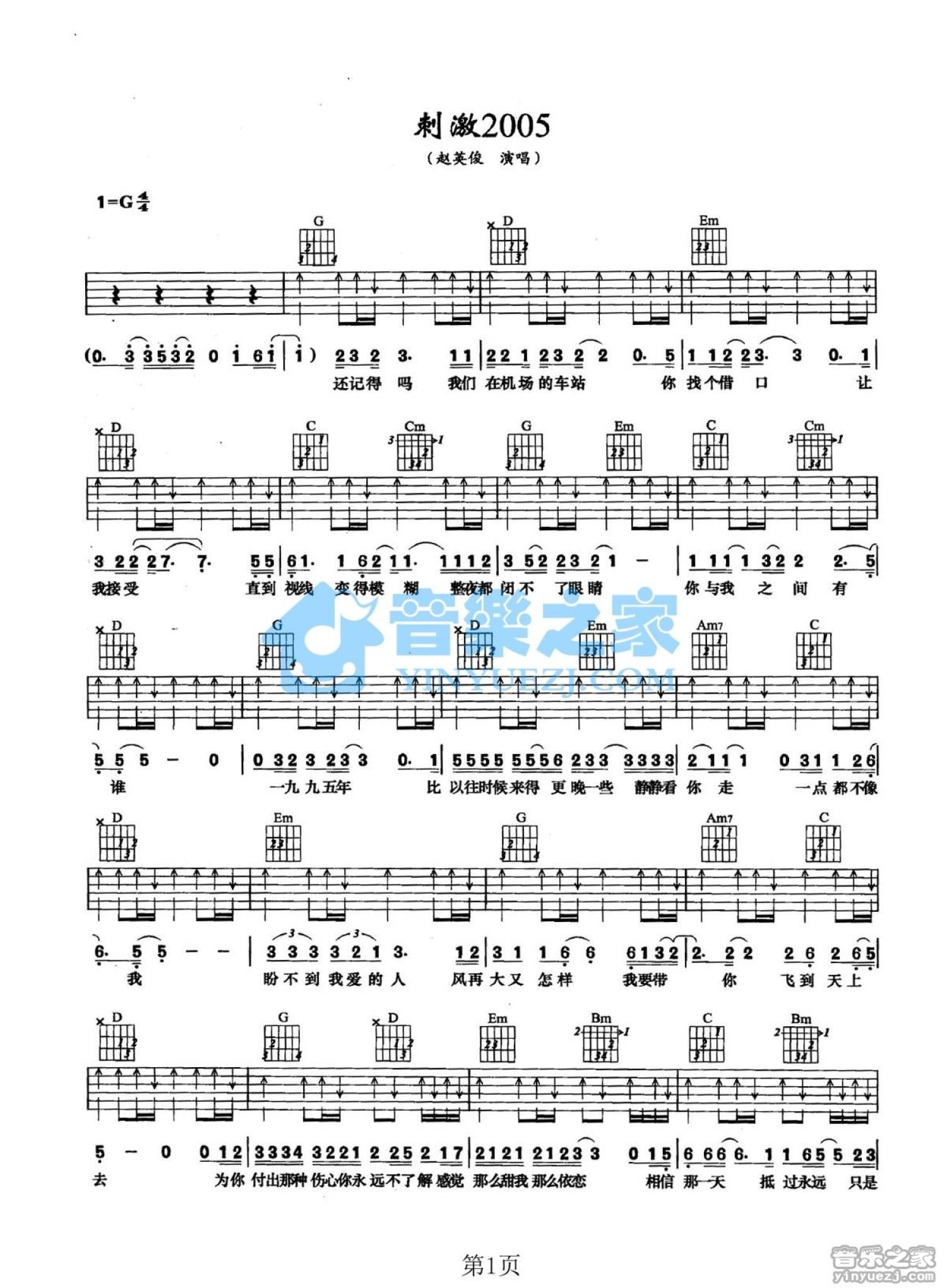 刺激2005吉他谱 - 赵英俊 - G调吉他弹唱谱