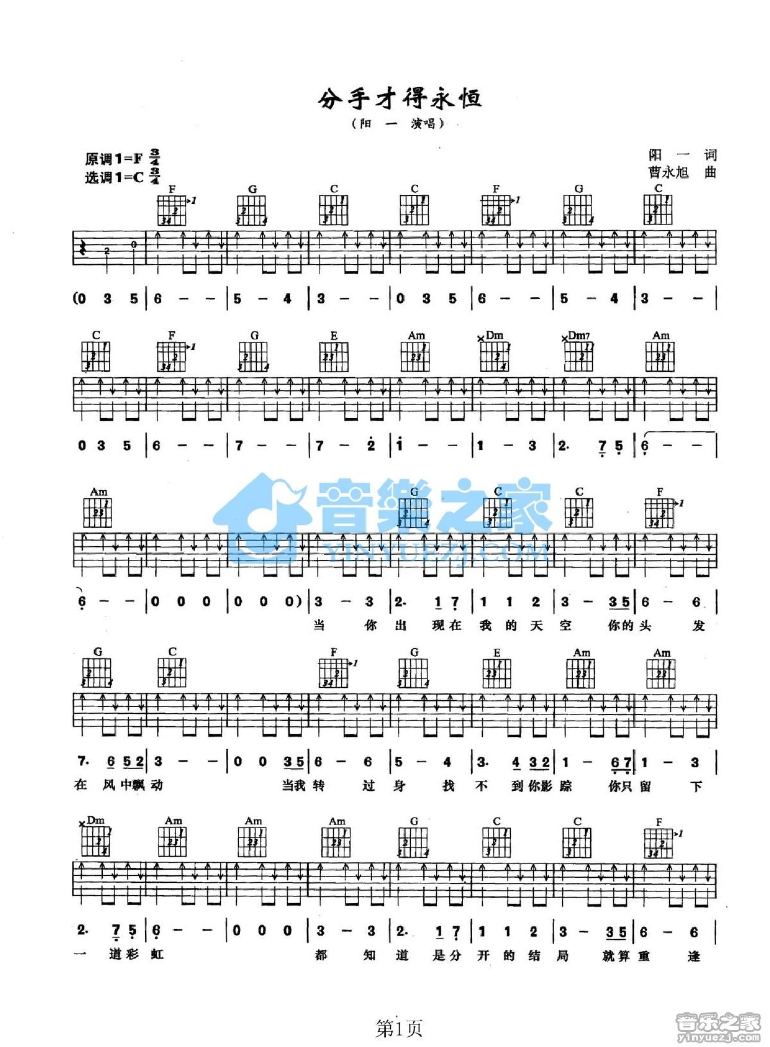 分手才得永恒吉他谱 - 阳一 - C调吉他弹唱谱
