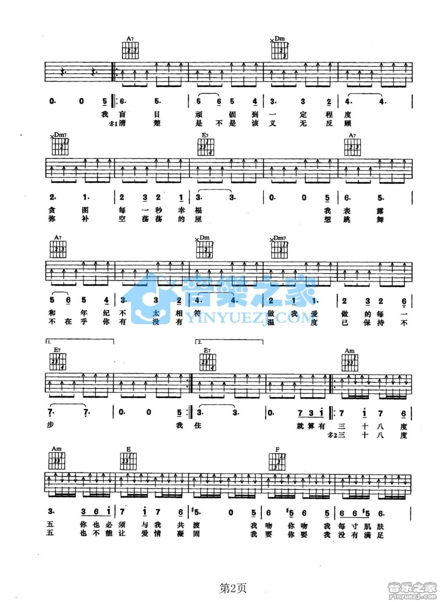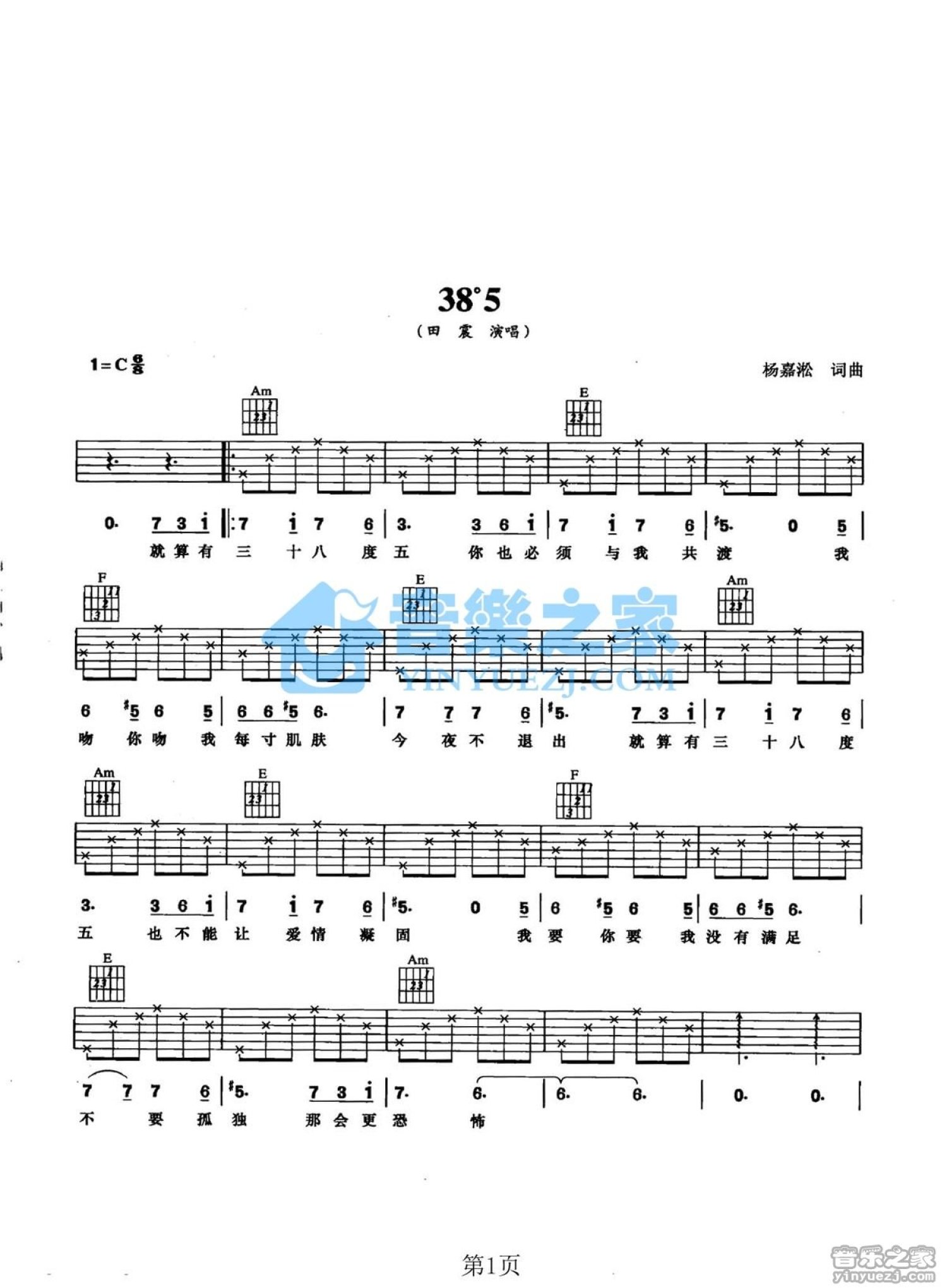 曲谱介绍: C调版《38°5》吉他弹唱六线谱