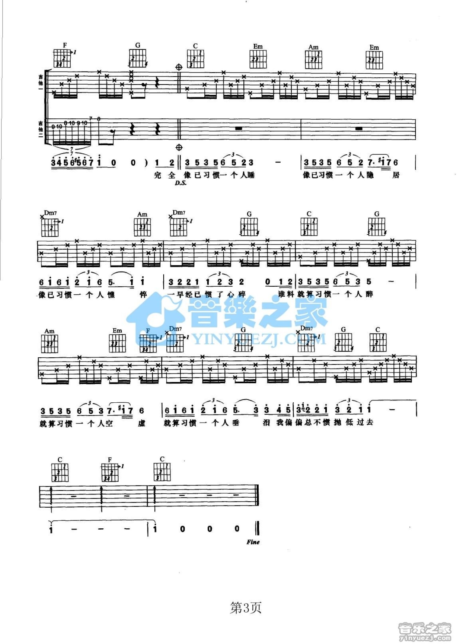 吉他弹唱C调来源:YYZJ759 浏览2021-02-06 10:32发布图谱共3页