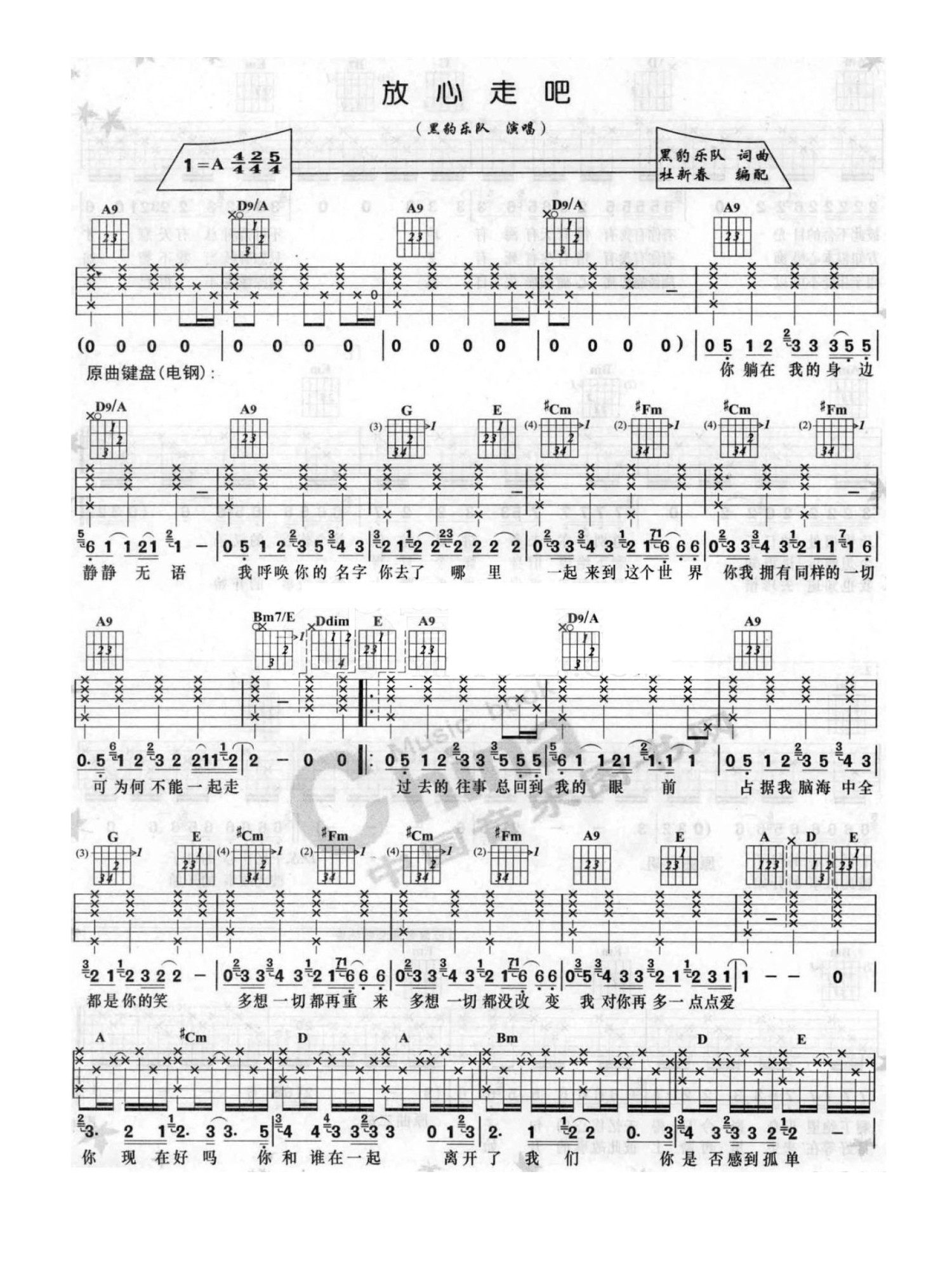 放心走吧吉他谱 - 黑豹乐队 - A调吉他弹唱谱