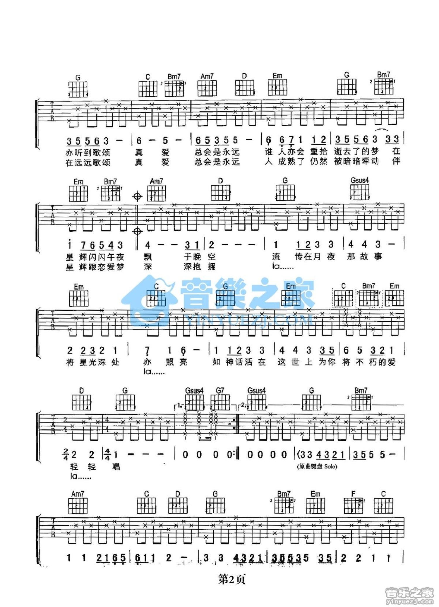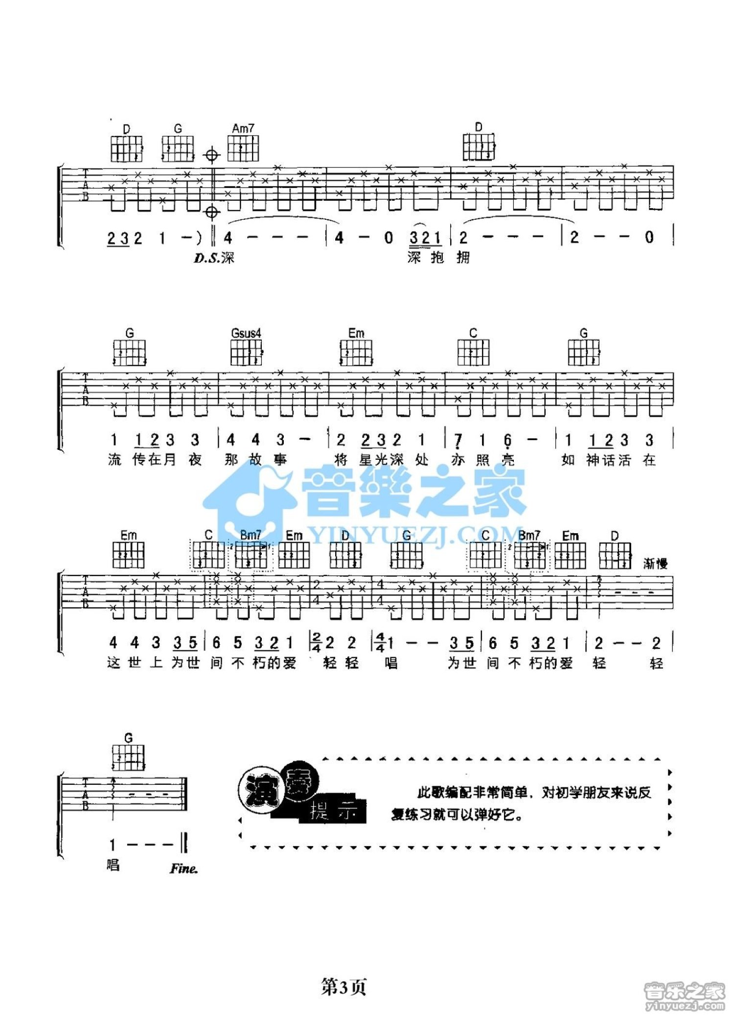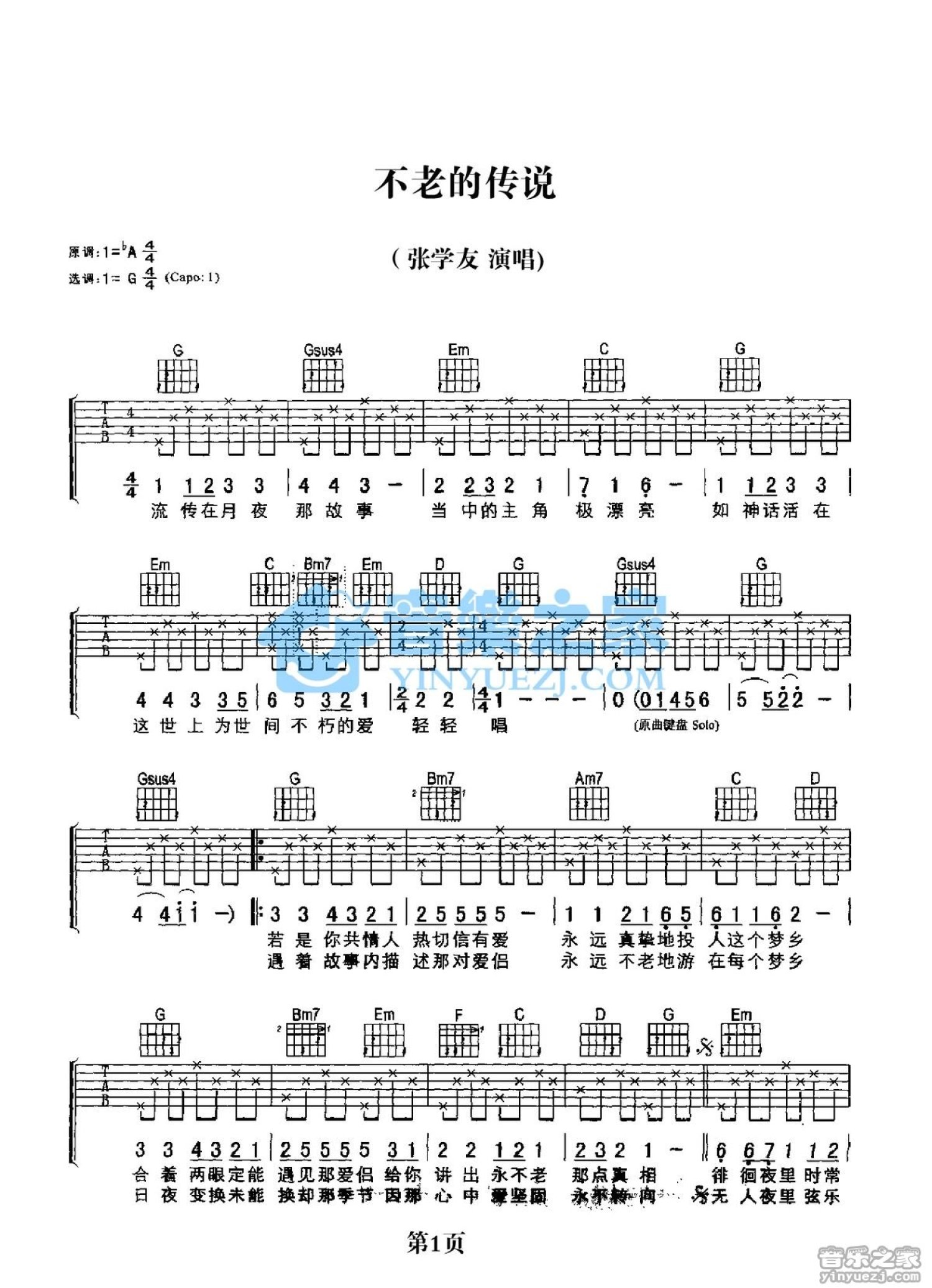 曲谱介绍: G调原版《不老的传说》吉他弹唱六线谱