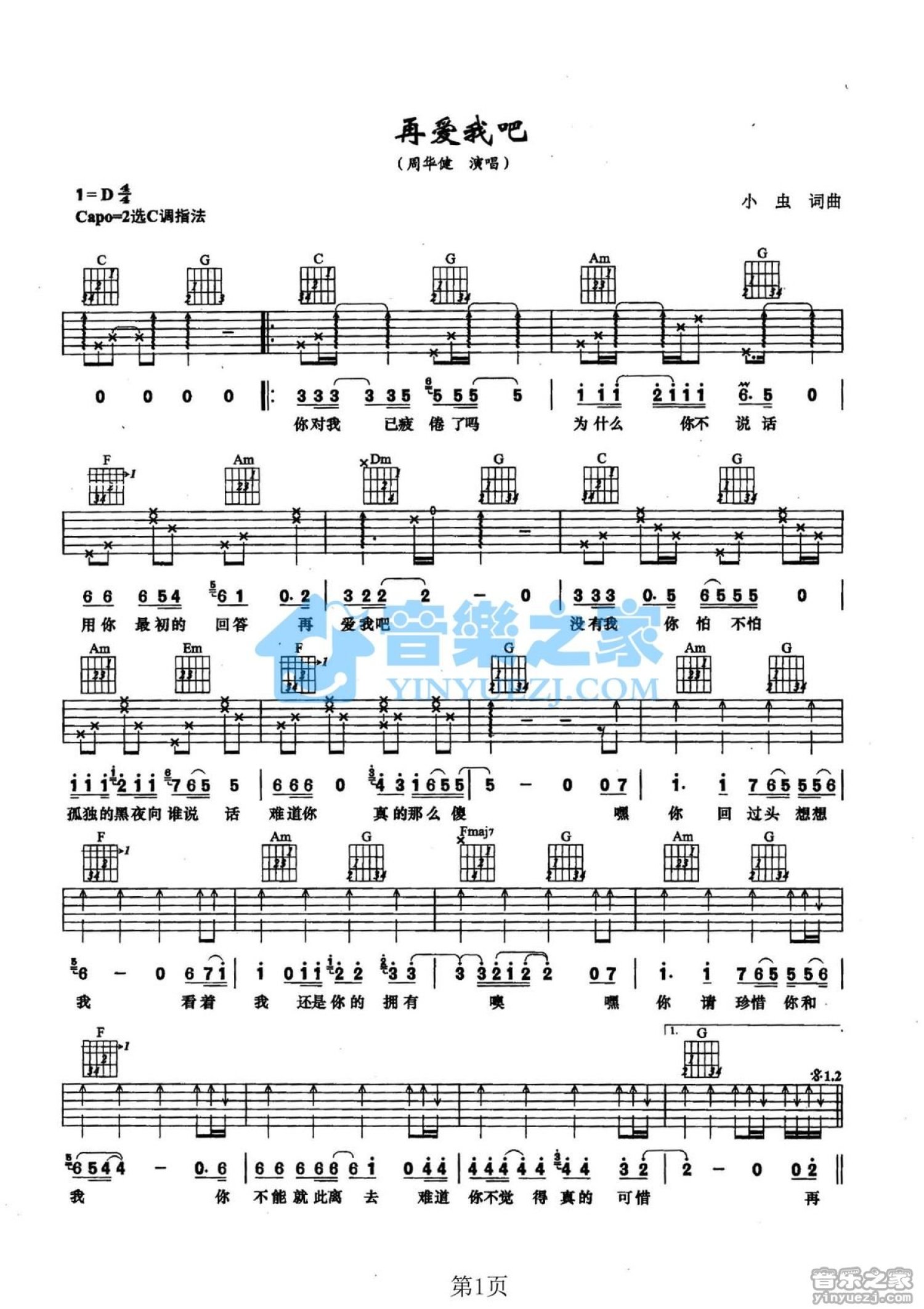 吉他弹唱C调来源:YYZJ675 浏览2021-02-06 09:46发布图谱共2页