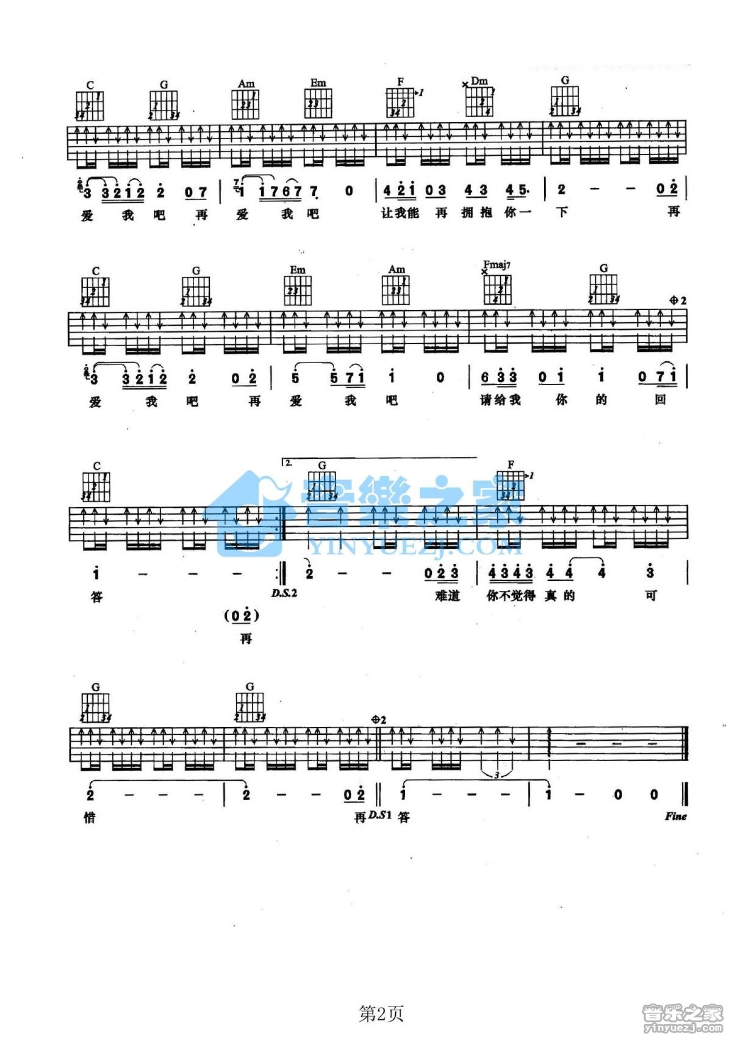 曲谱介绍: C调《再爱我吧》吉他弹唱六线谱
