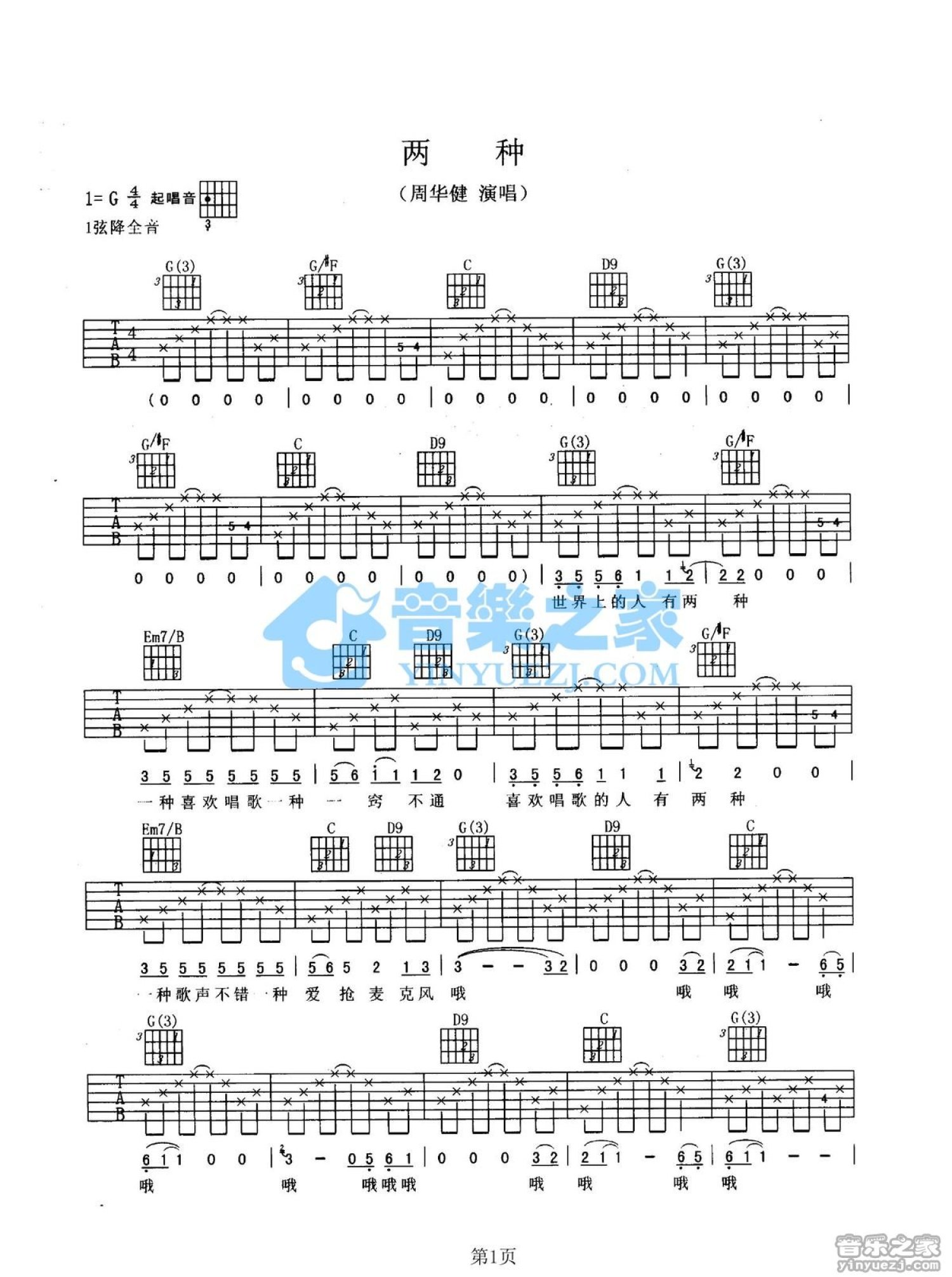 曲谱介绍: G调《两种》吉他弹唱六线谱