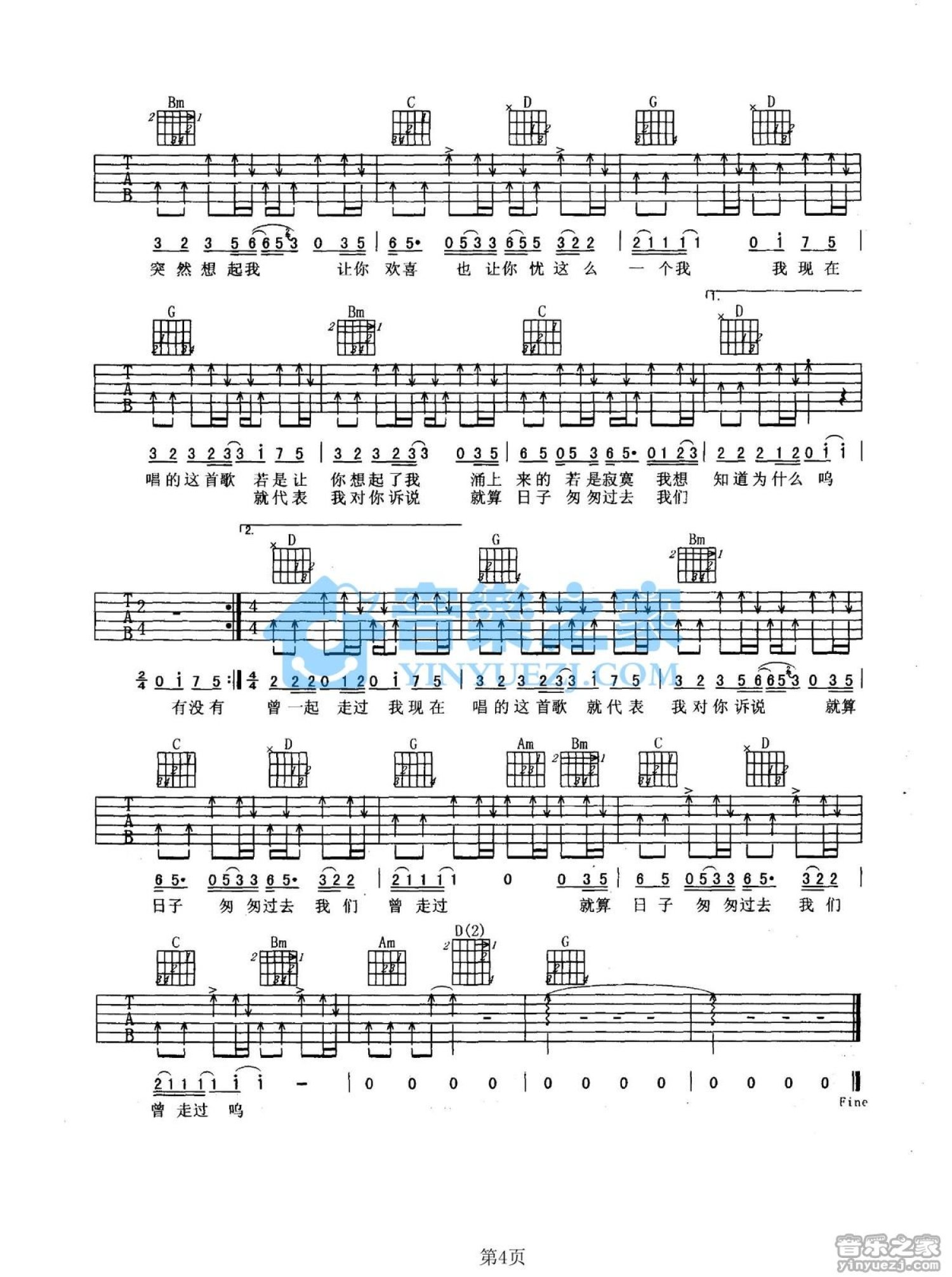 当前位置:琴谱网>吉他弹唱>有没有一首歌会让我想起你