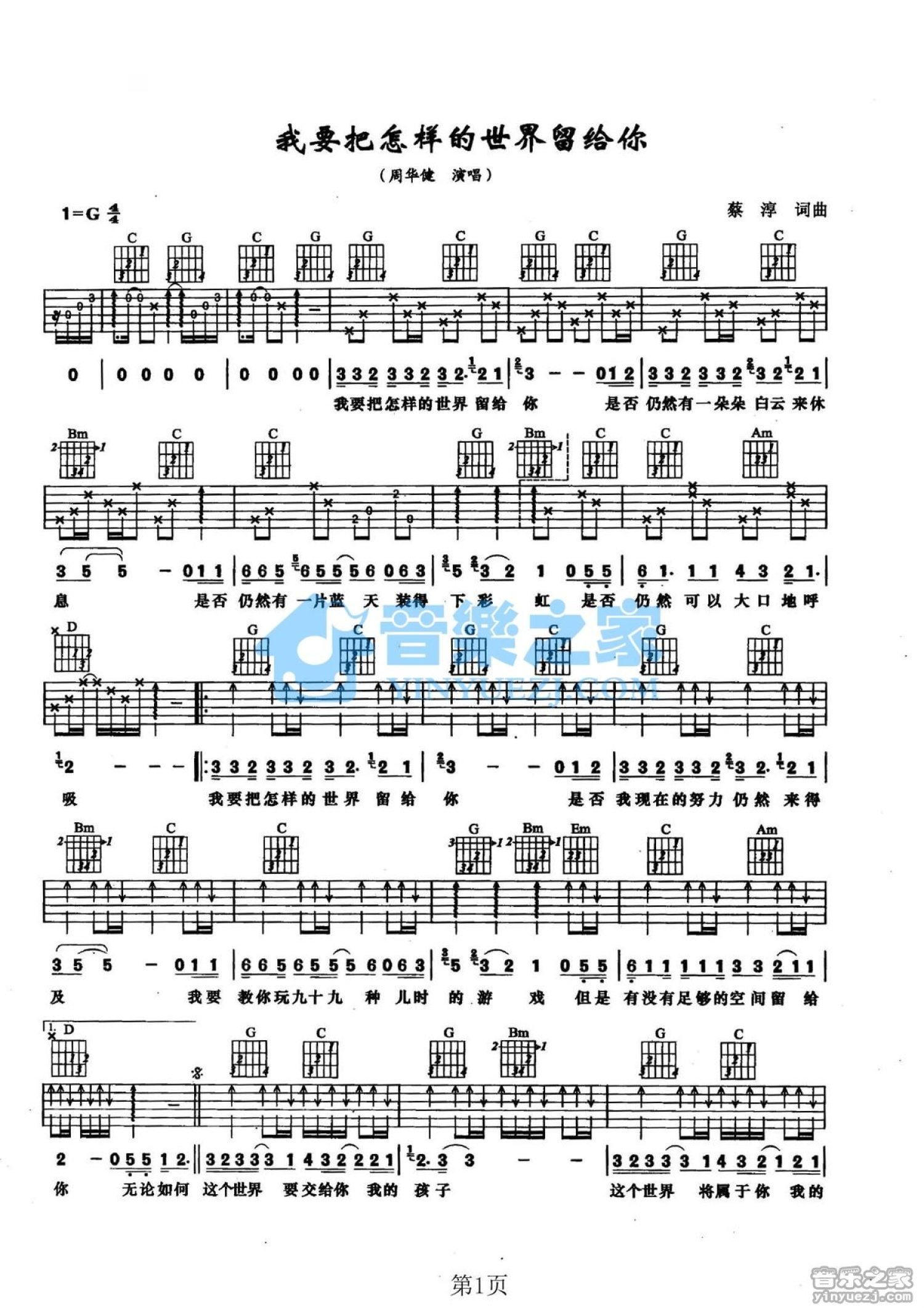 曲谱介绍: G调《我要把怎样的世界留给你》吉他弹唱六线谱
