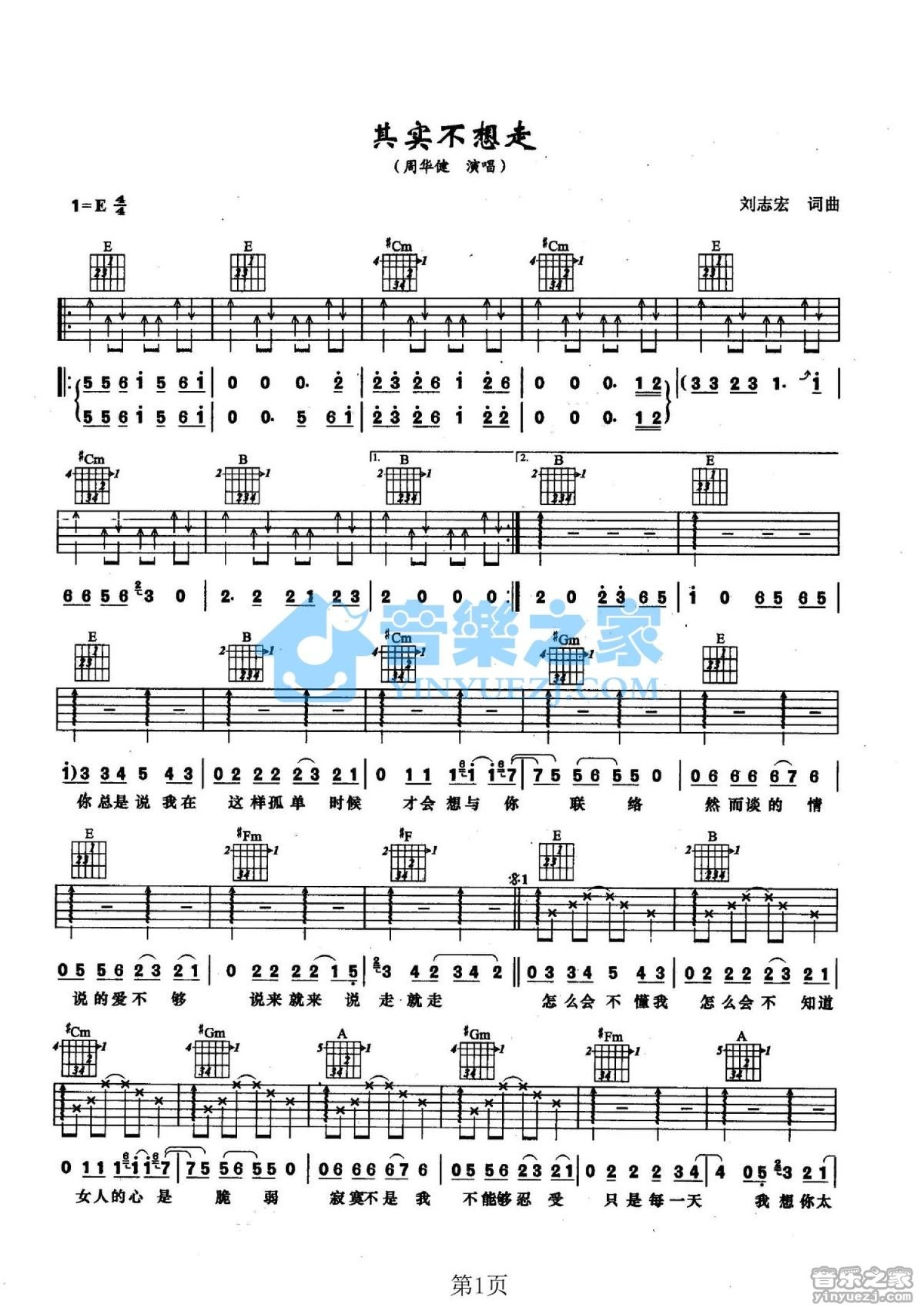 其实不想走吉他谱 - 周华健 - E调吉他弹唱谱