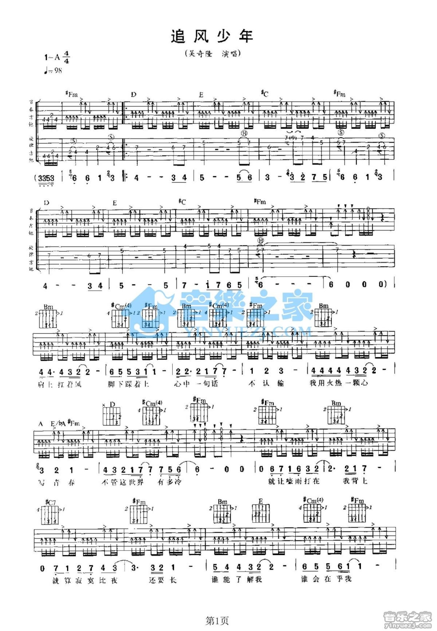 当前位置:琴谱网>吉他弹唱>追风少年