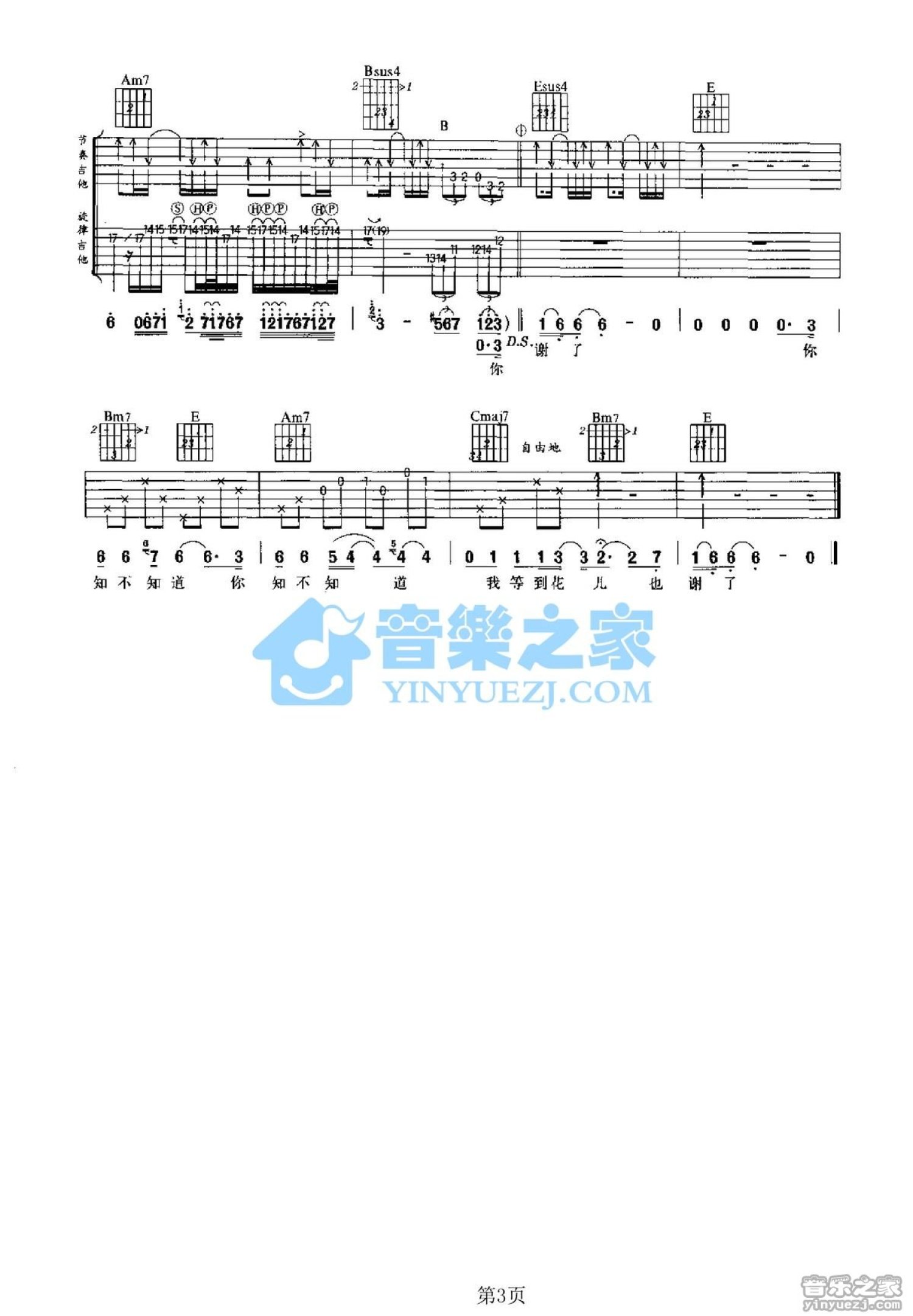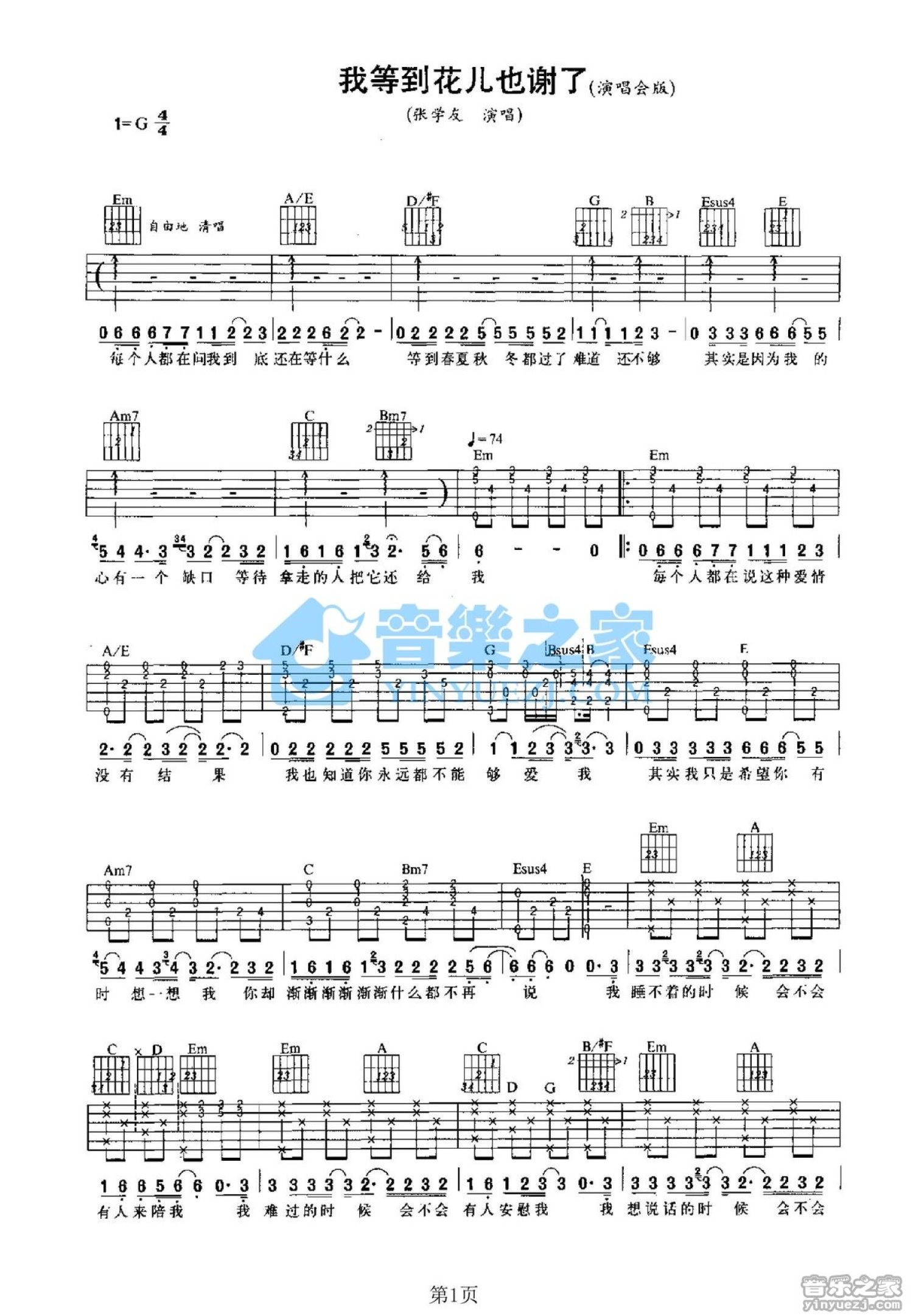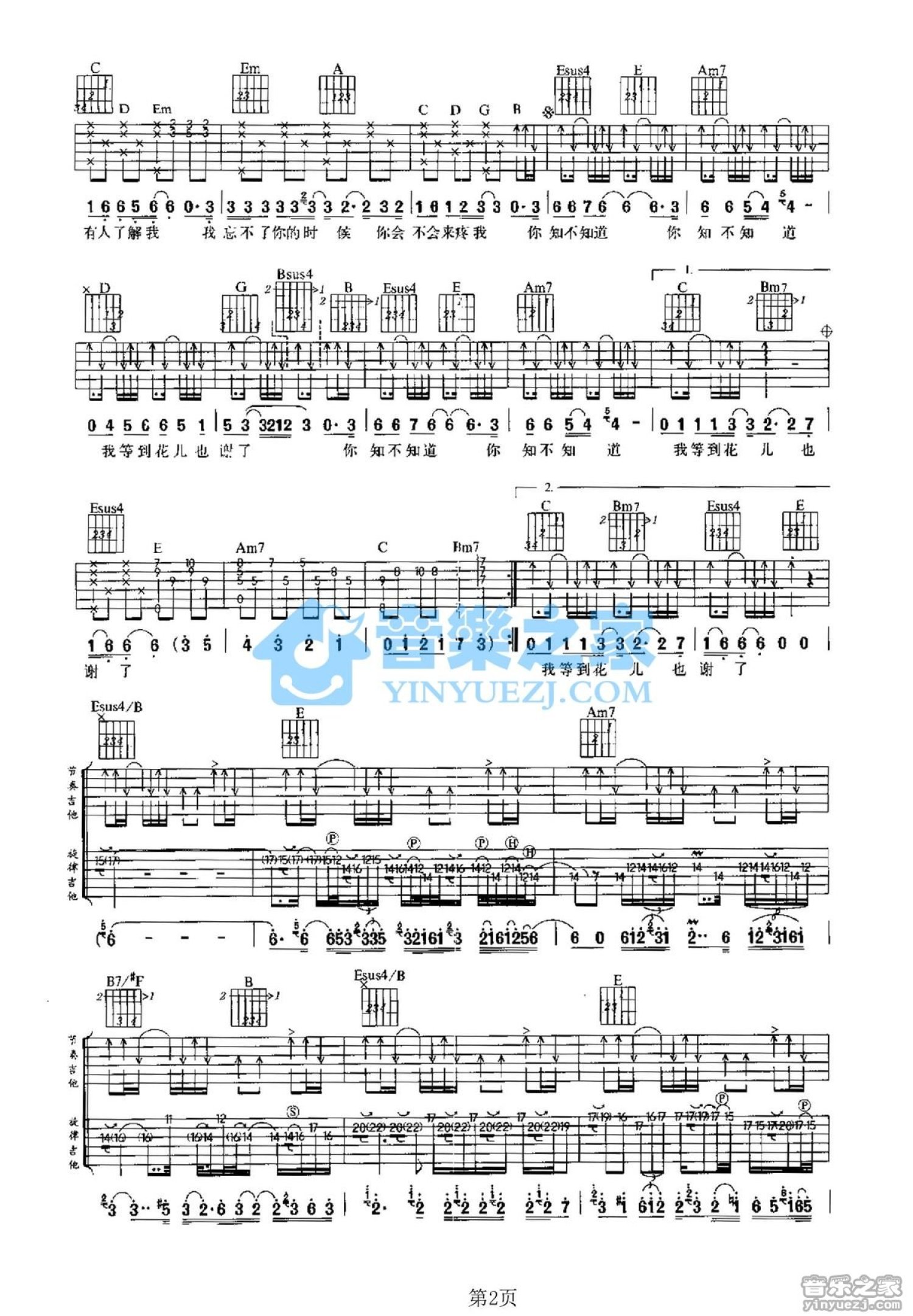 曲谱介绍: G调《我等到花儿都谢了》吉他弹唱六线谱
