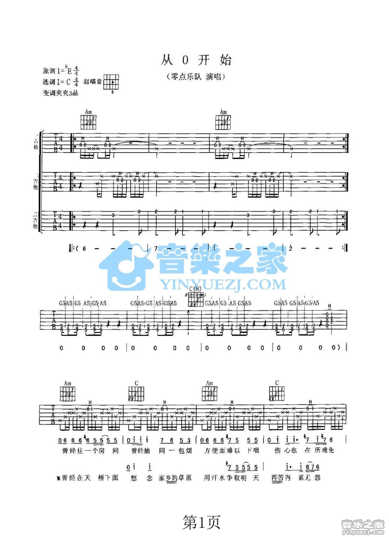 从零开始吉他谱 - 零点乐队 - C调吉他弹唱谱 - 三吉他版