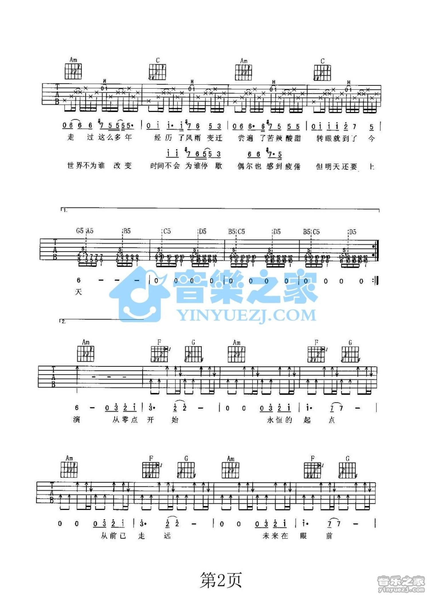 曲谱介绍: C调《从零开始》吉他弹唱六线谱