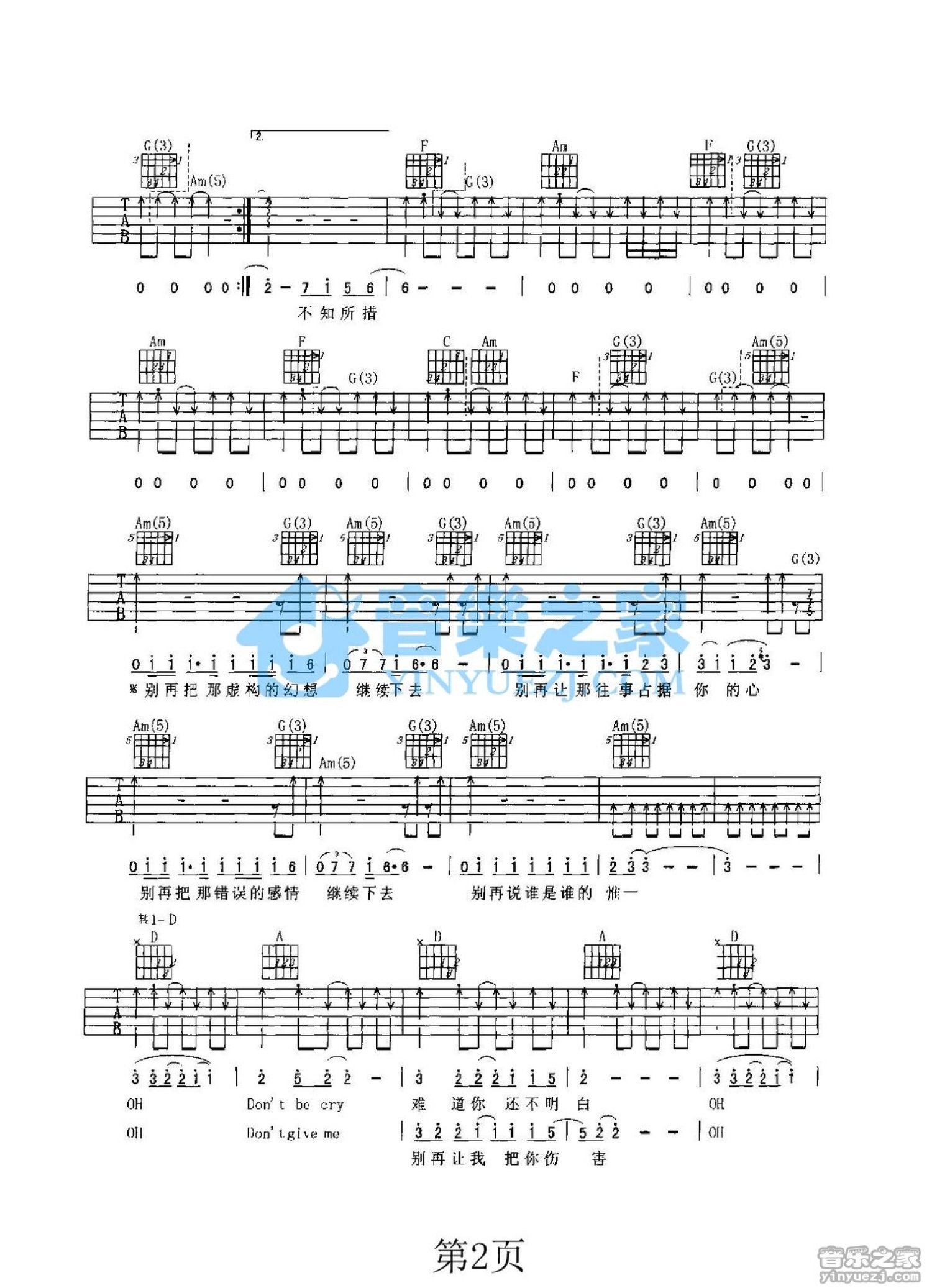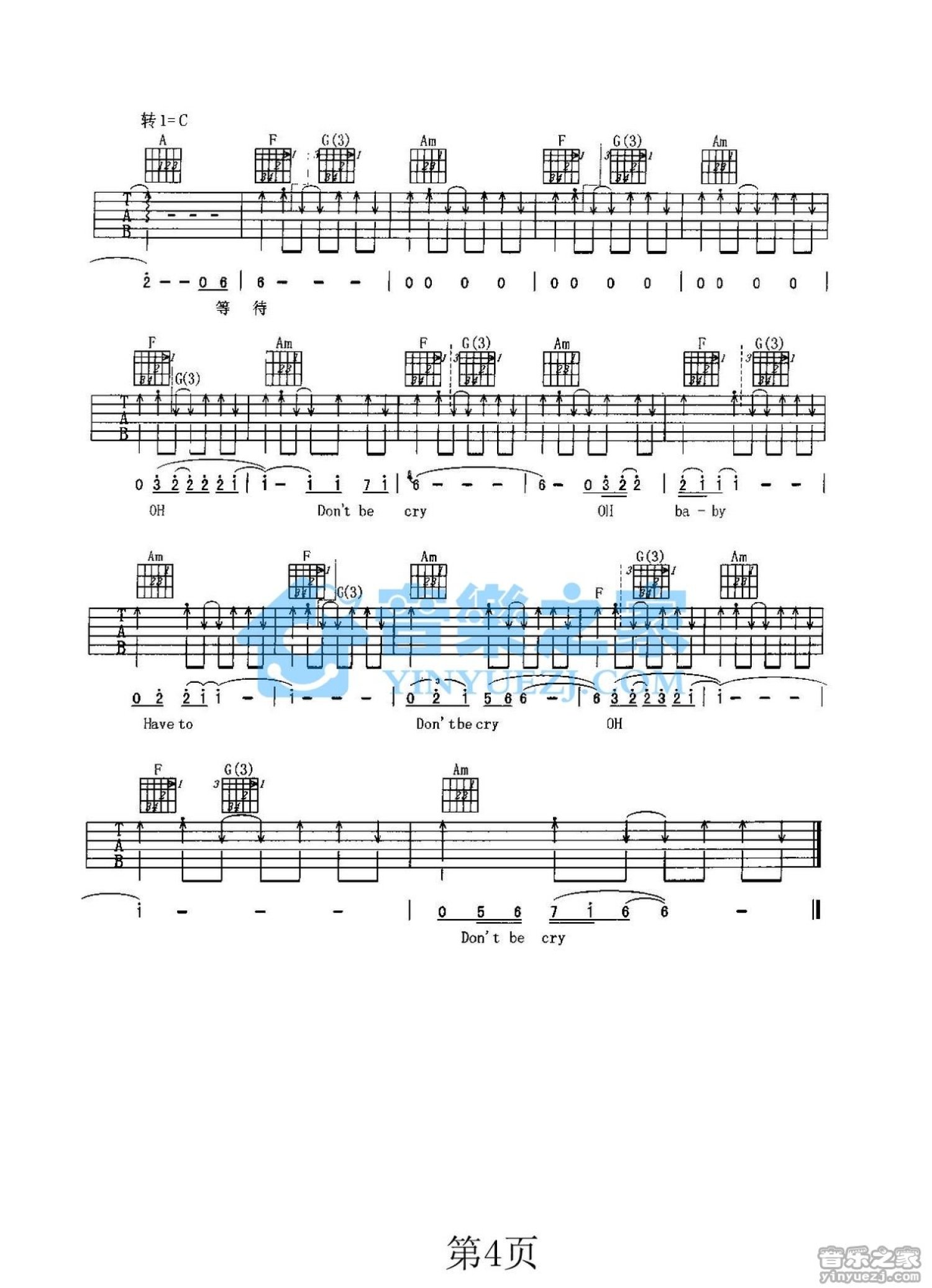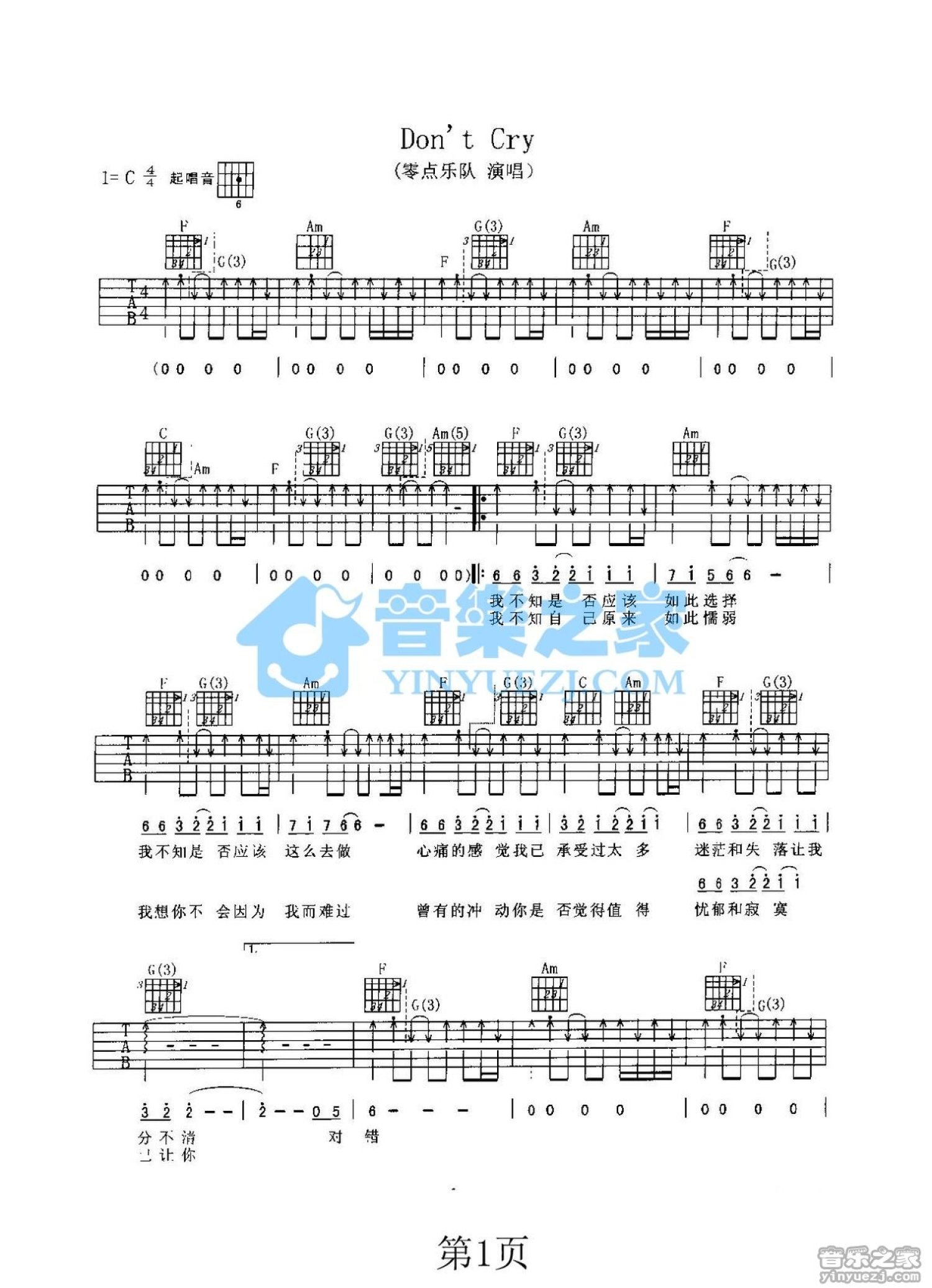 曲谱介绍: C调《Dont'Cry》吉他弹唱六线谱