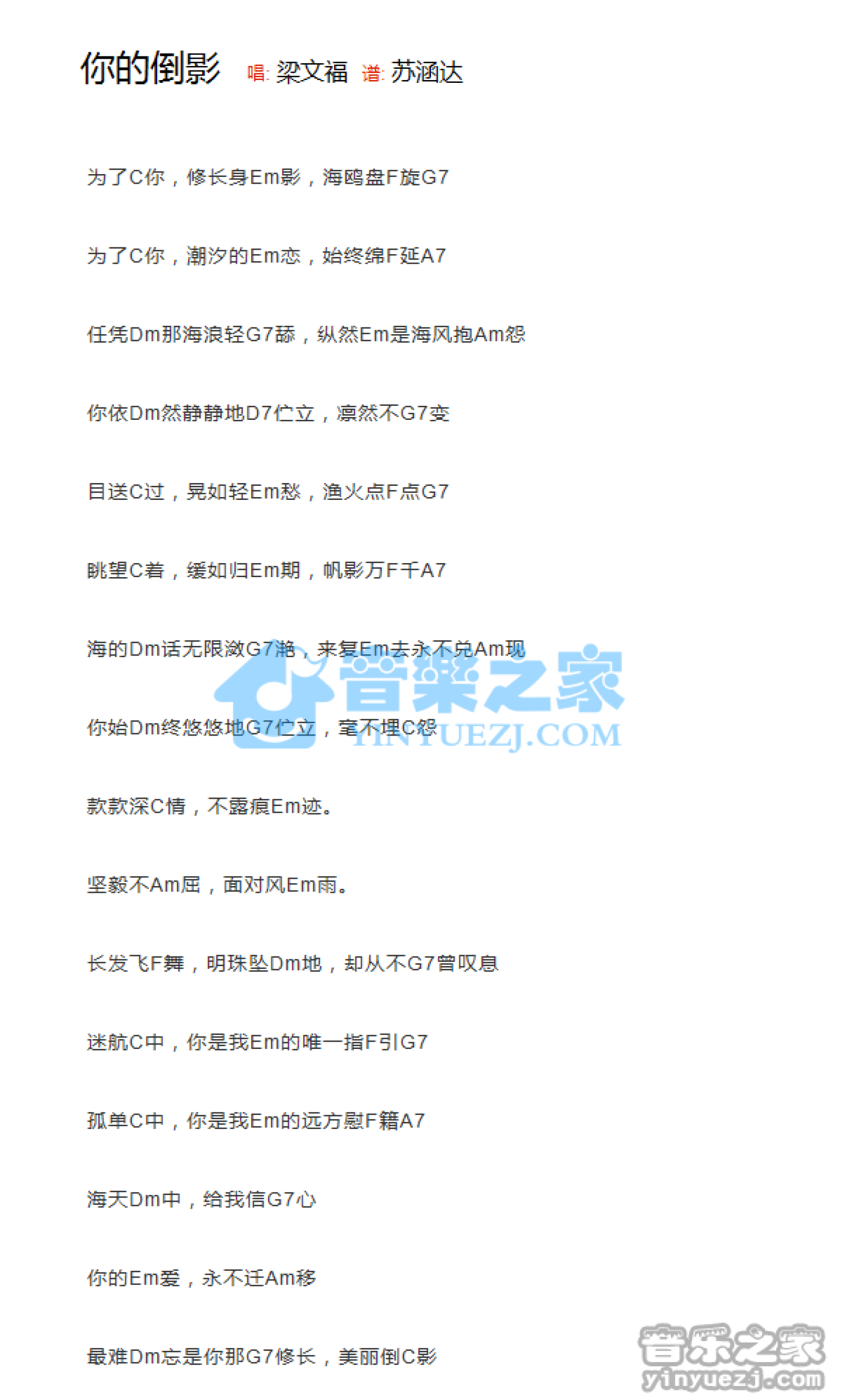你的倒影吉他谱 - 梁文福 - C调吉他弹唱谱 - 和弦谱