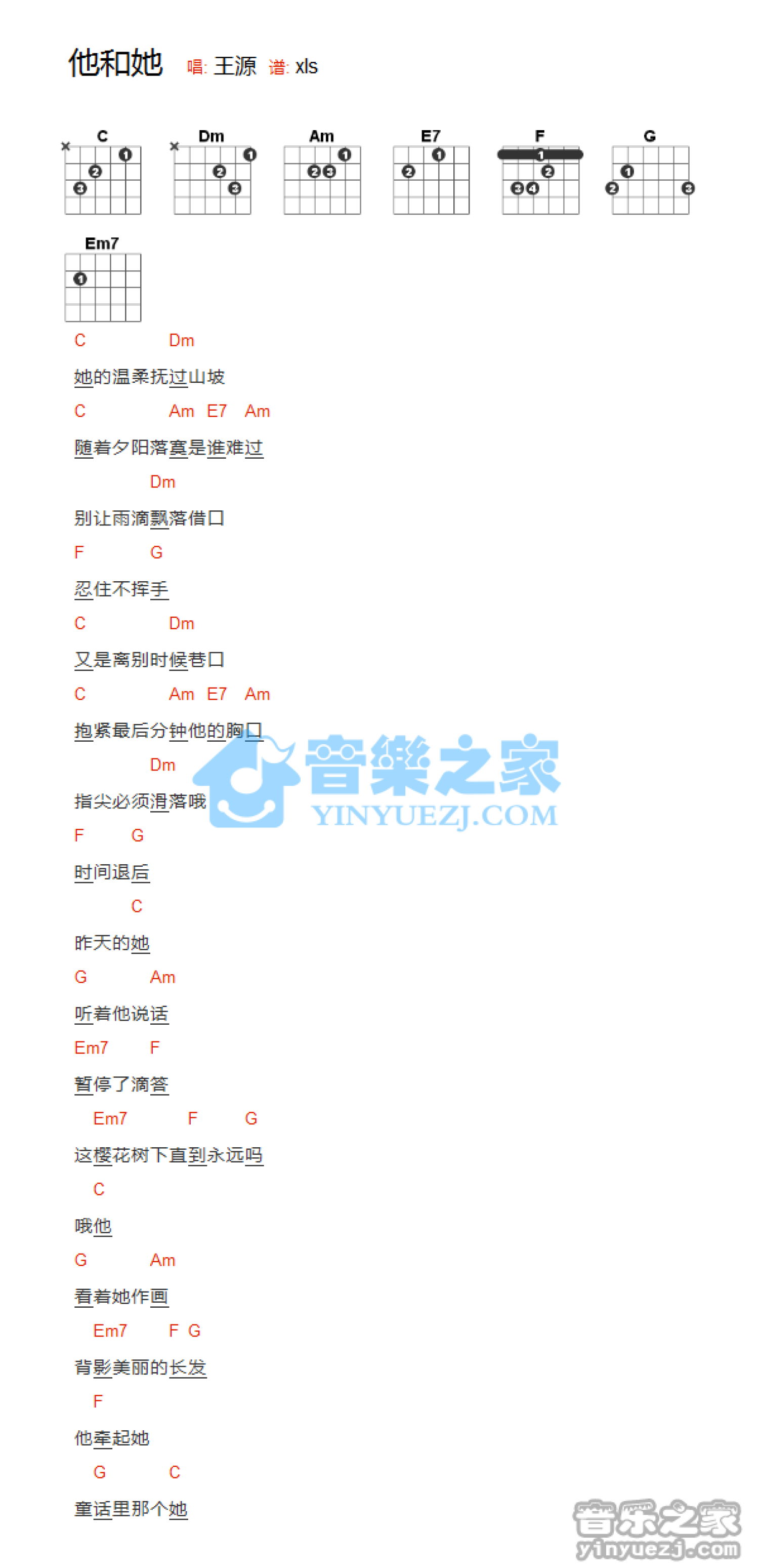 他和她吉他谱 - 王源 - C调吉他弹唱谱 - 和弦谱