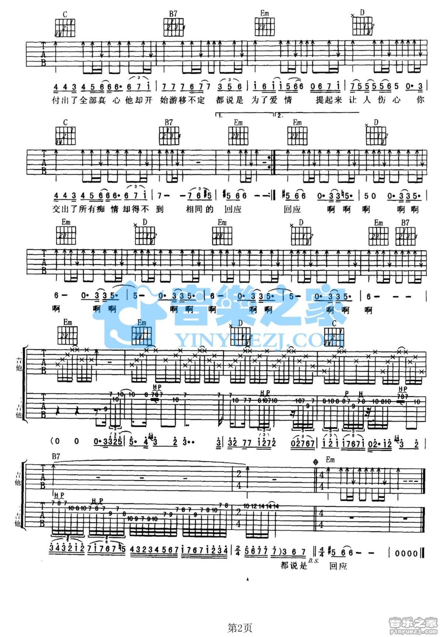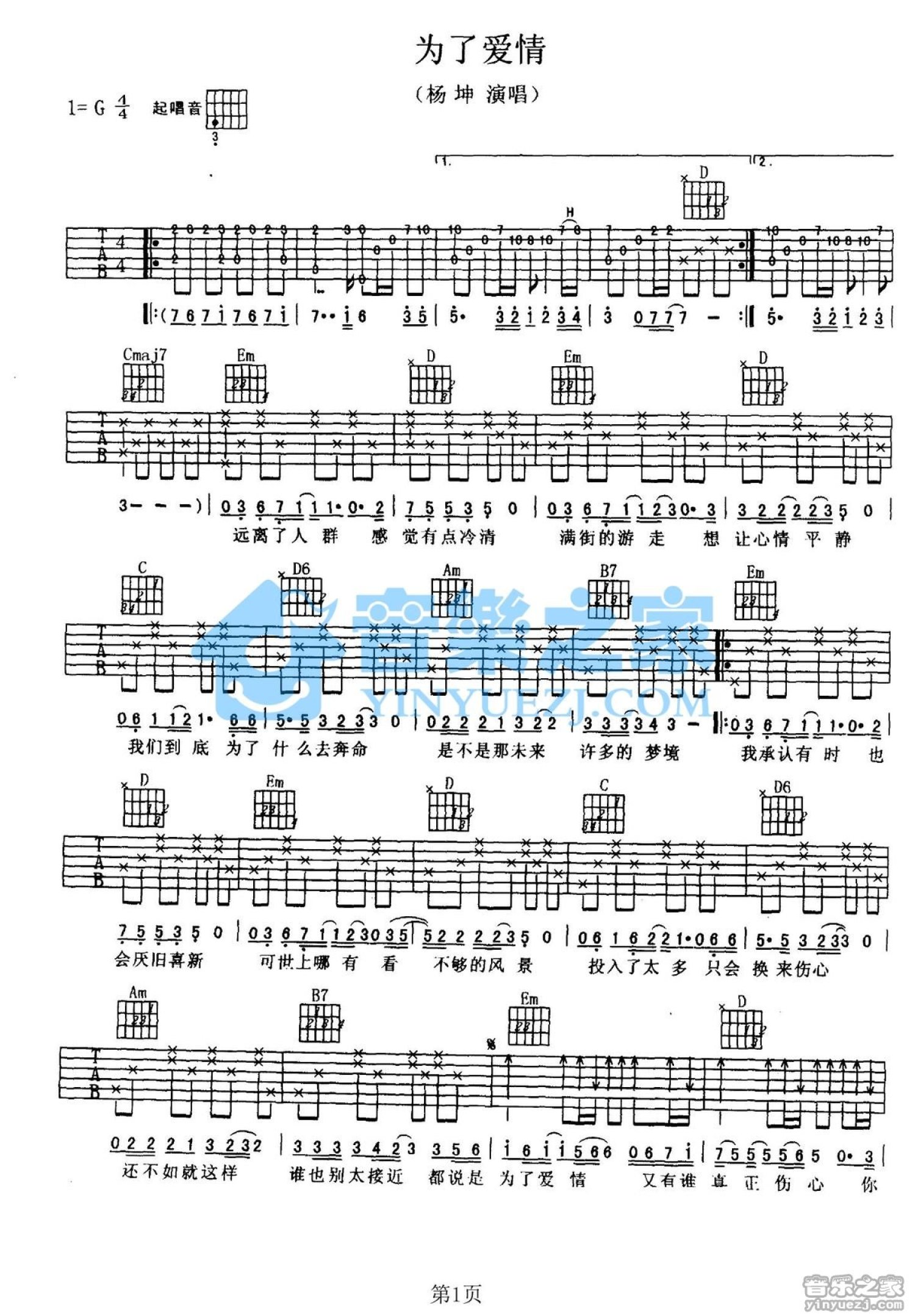 曲谱介绍: G调《为了爱情》吉他弹唱六线谱