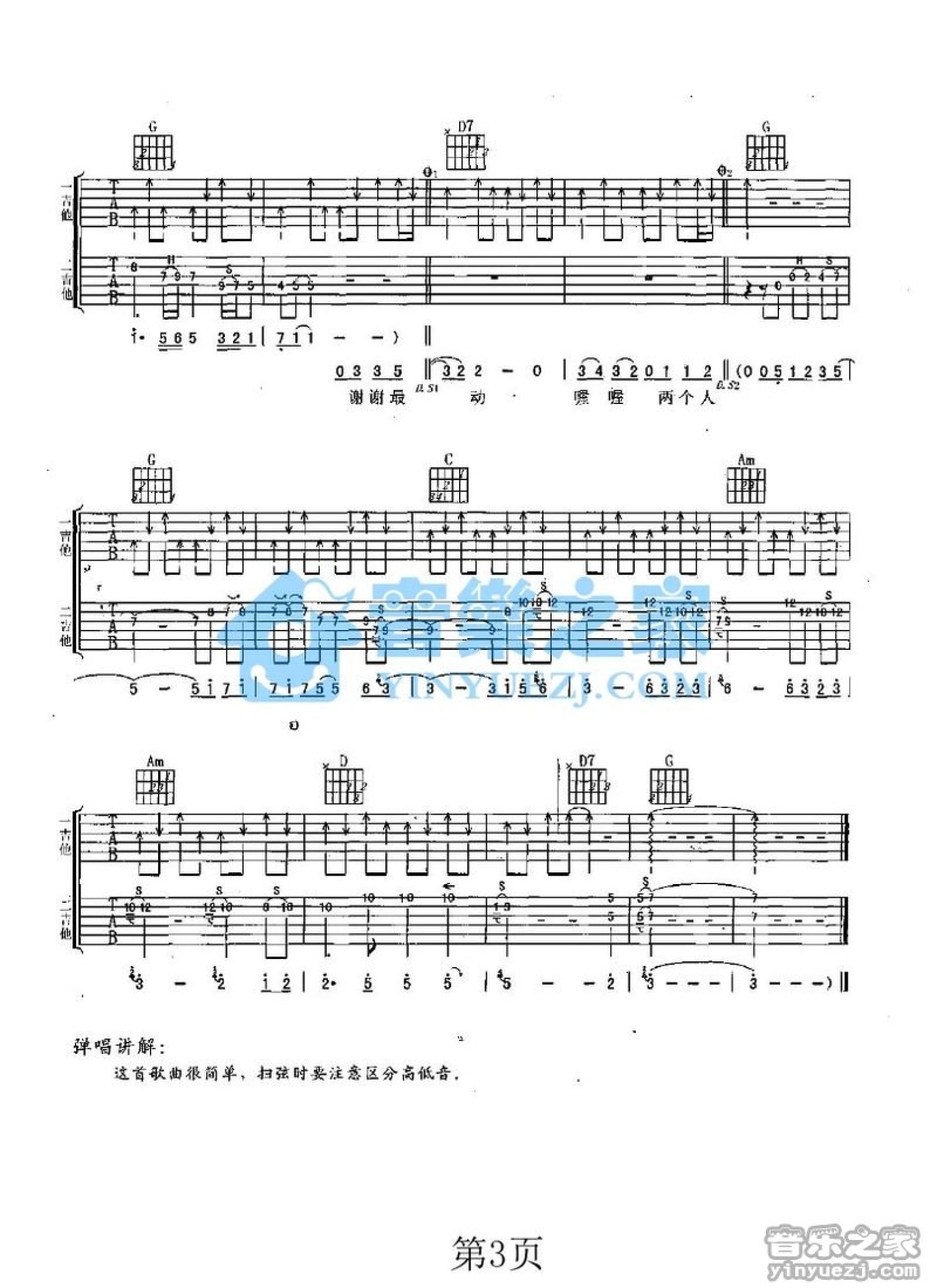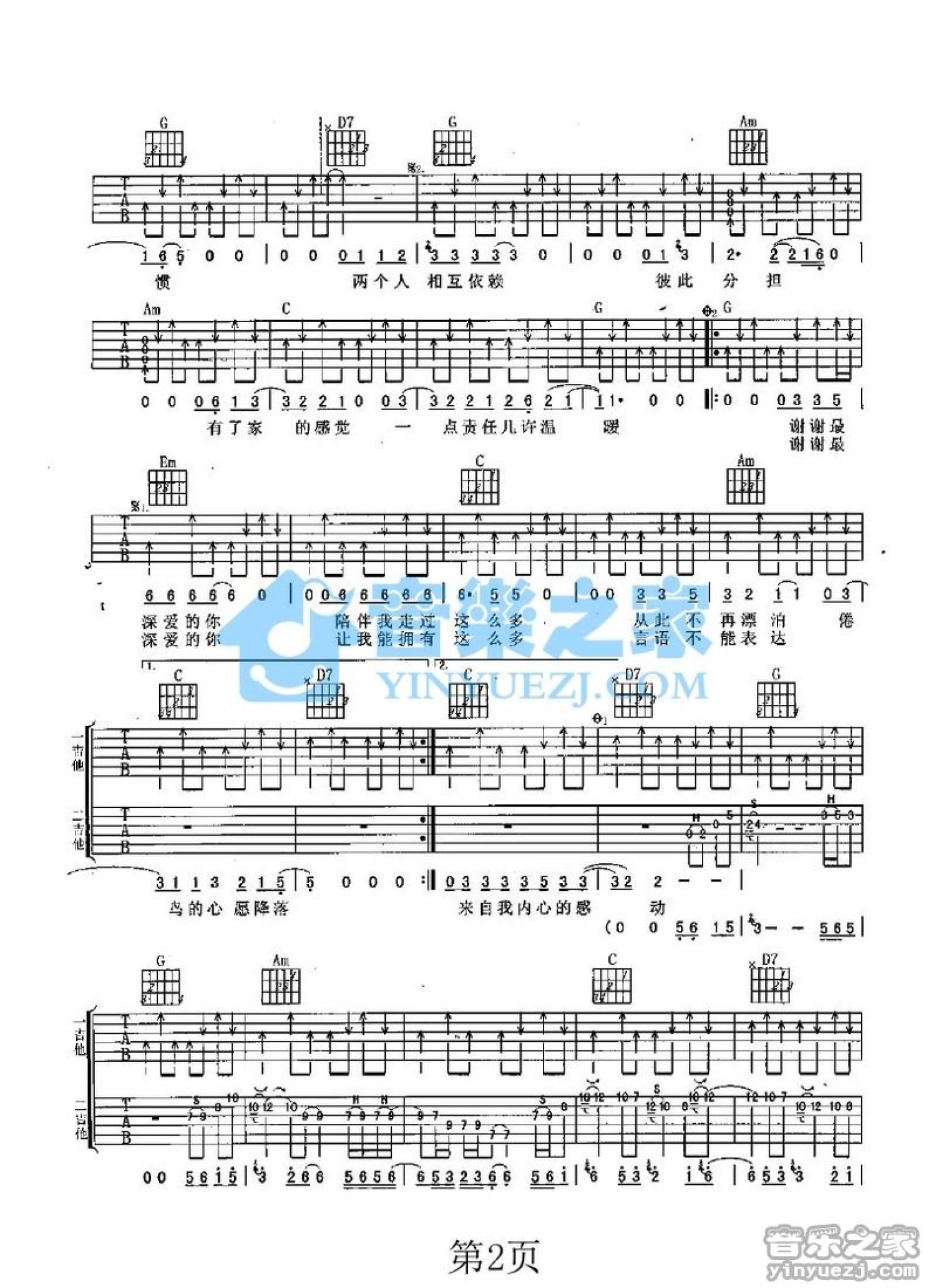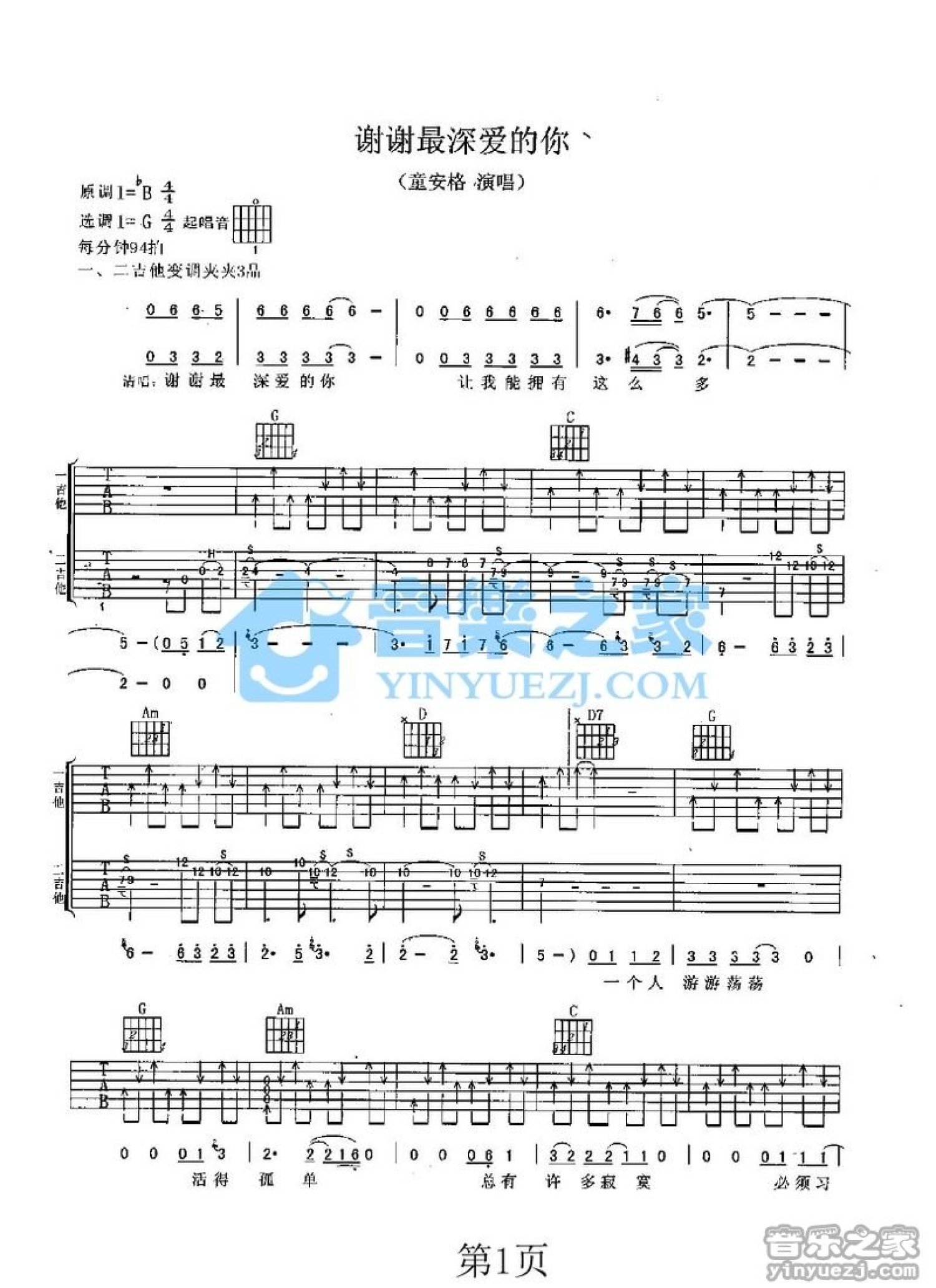 曲谱介绍: G调《谢谢最深爱的你》吉他弹唱六线谱