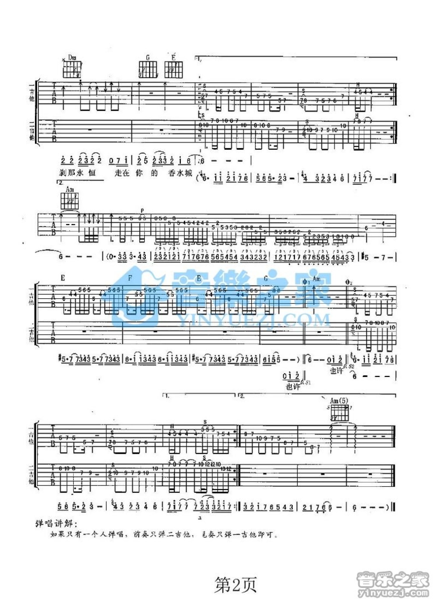 当前位置:琴谱网>吉他弹唱>香水城
