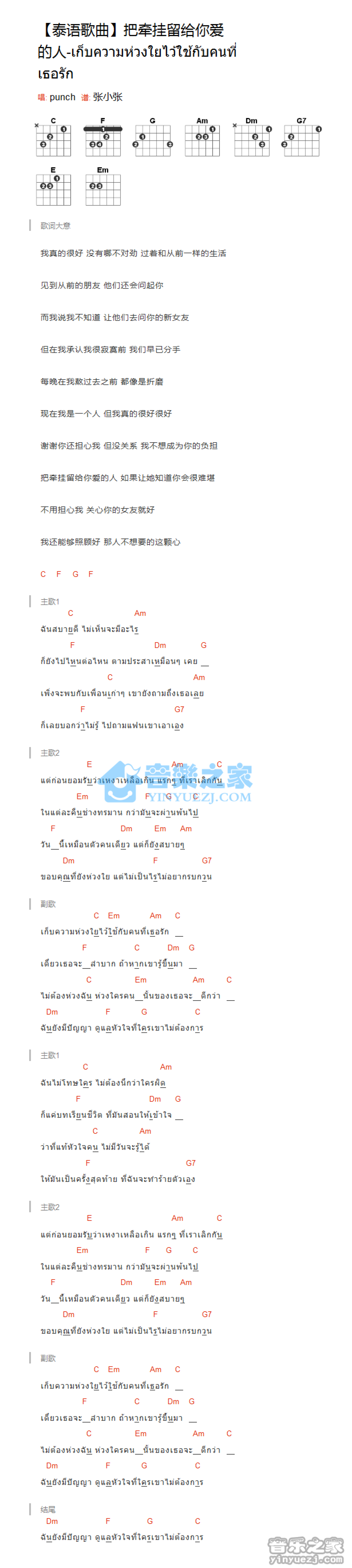 曲谱介绍: punch《把牵挂留给你爱的人》吉他和弦弹唱谱