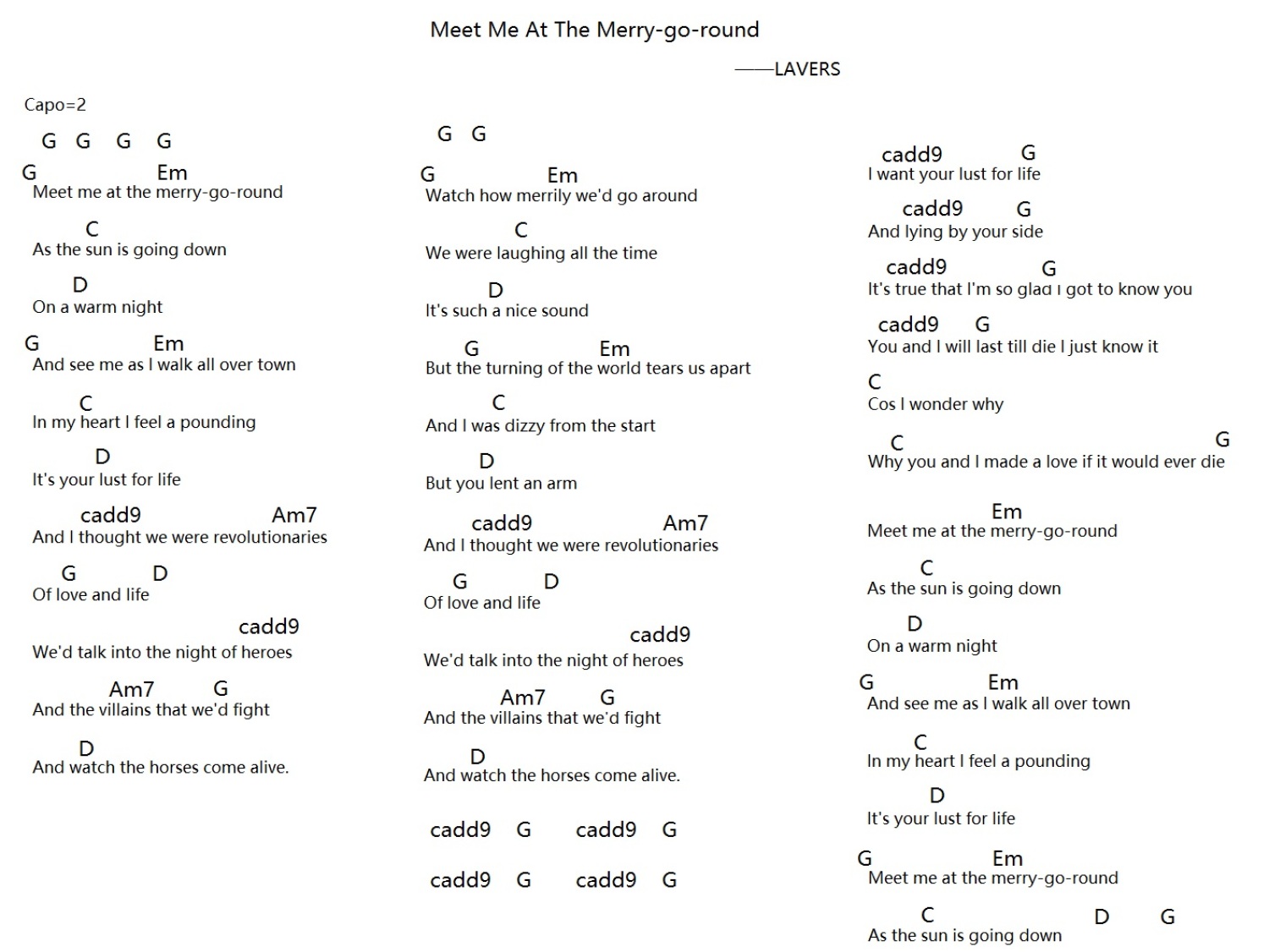 Meet Me At The Merry-go-round吉他谱 - LAVERS - G调吉他弹唱谱 - 和弦谱