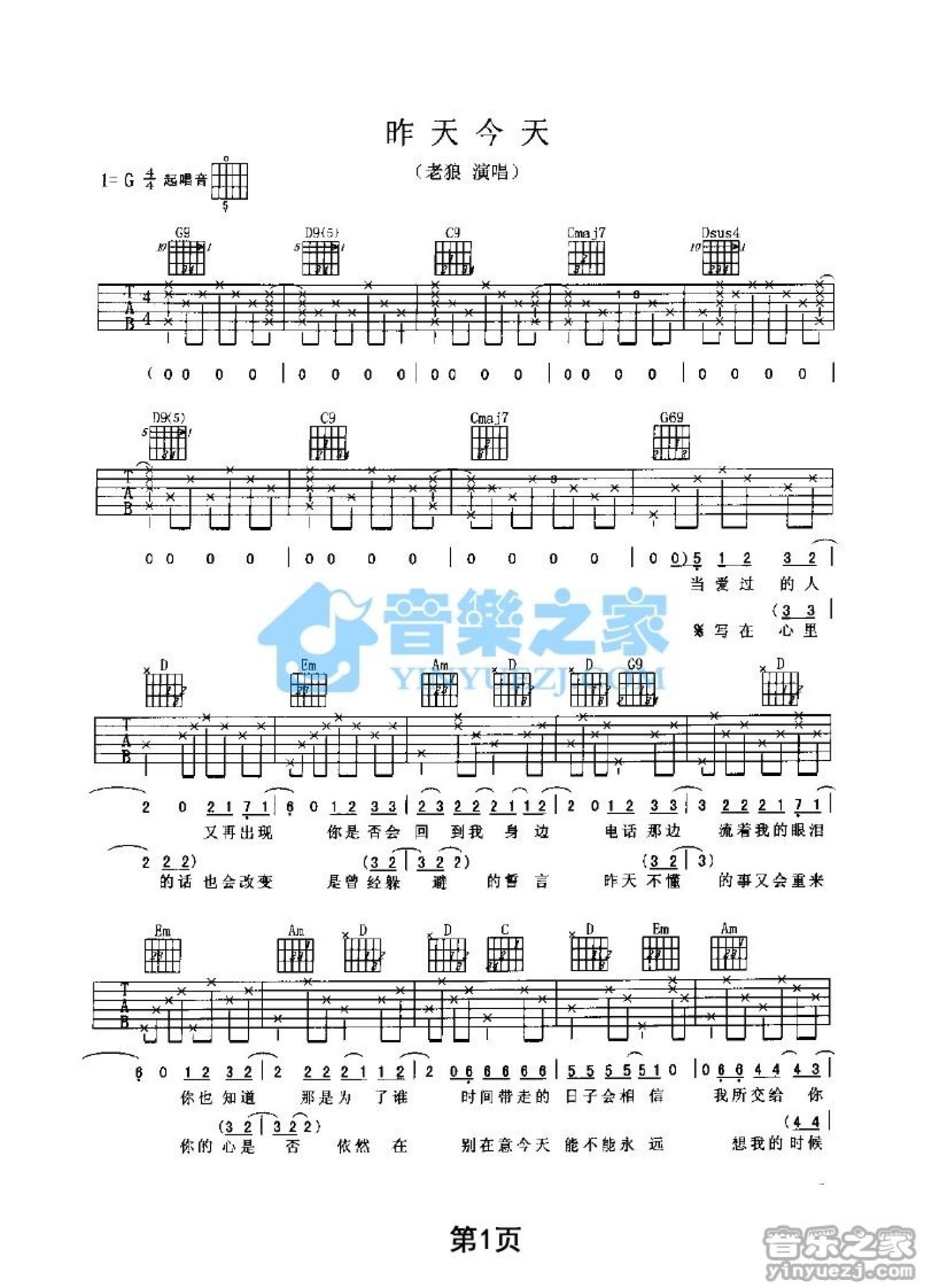 曲谱介绍: C调双吉他版老狼《给S》吉他弹唱六线谱