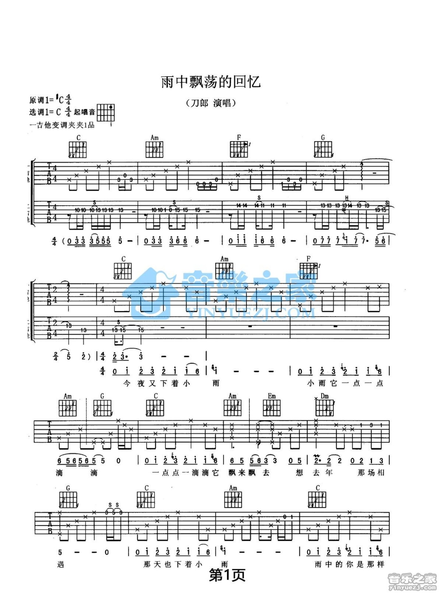 曲谱介绍: C调双吉他版刀郎《风中飘荡的回忆》吉他弹唱六线谱