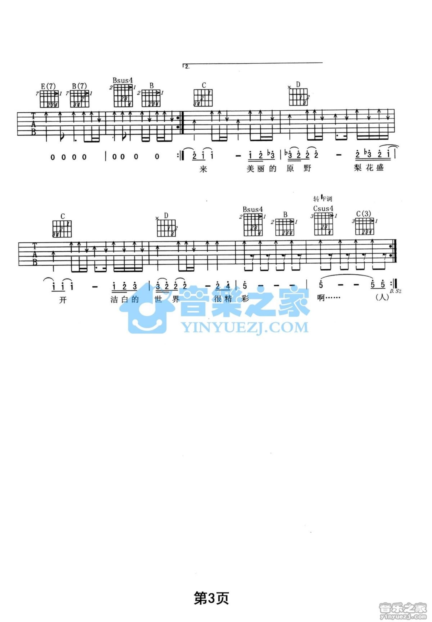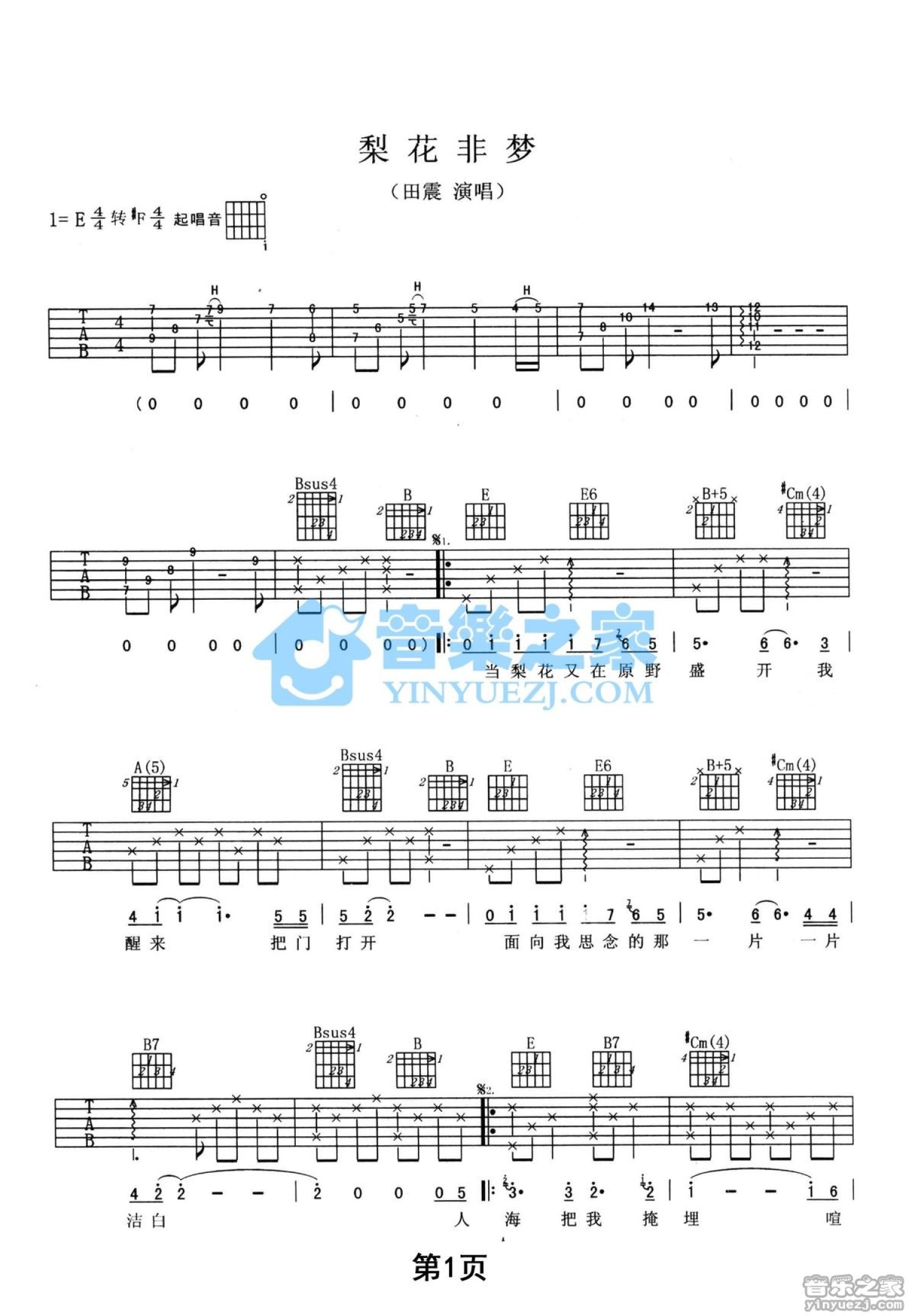 曲谱介绍: E转#F调版田震《梨花非梦》吉他弹唱六线谱