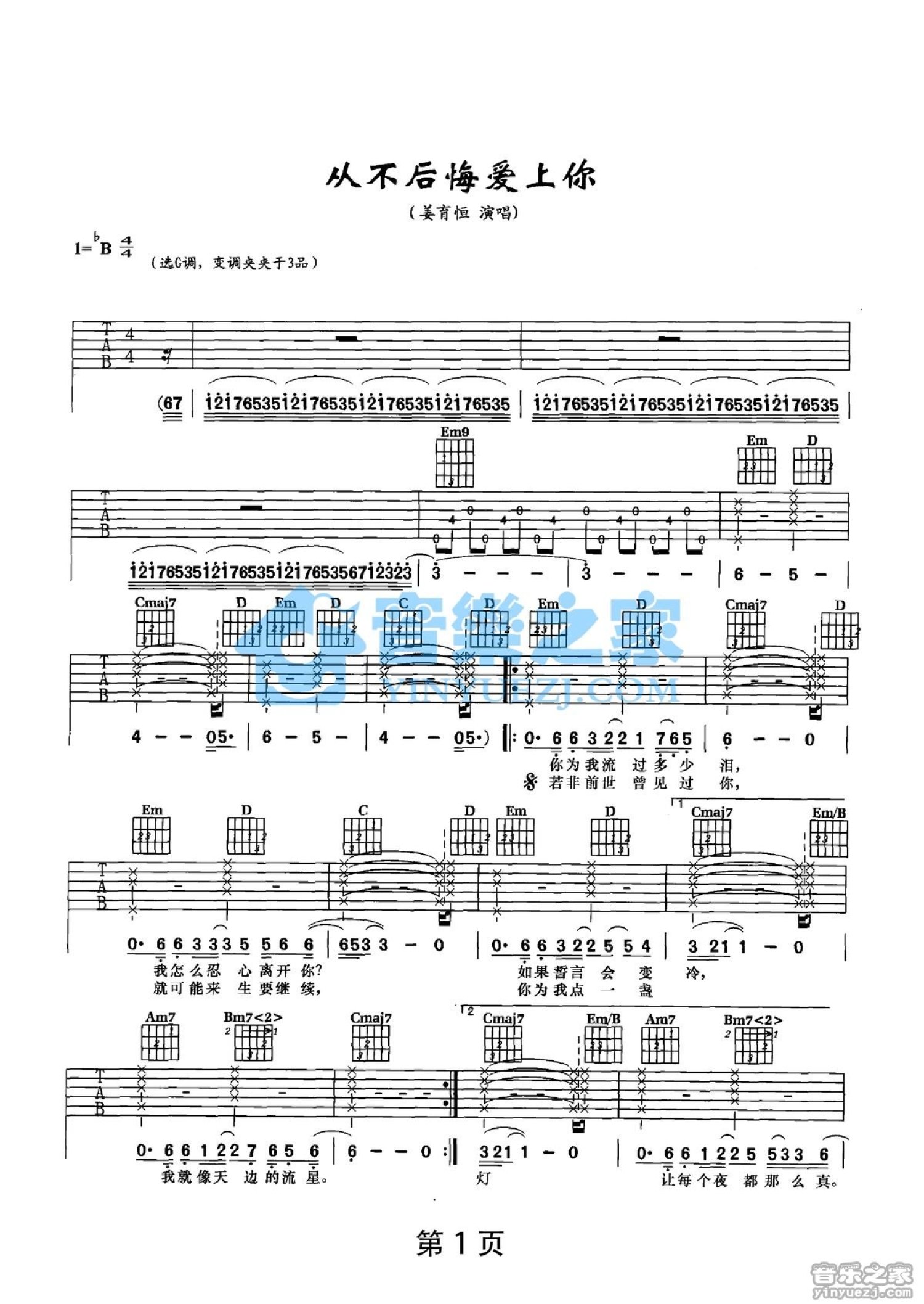 当前位置:琴谱网>吉他弹唱>从不后悔爱上你