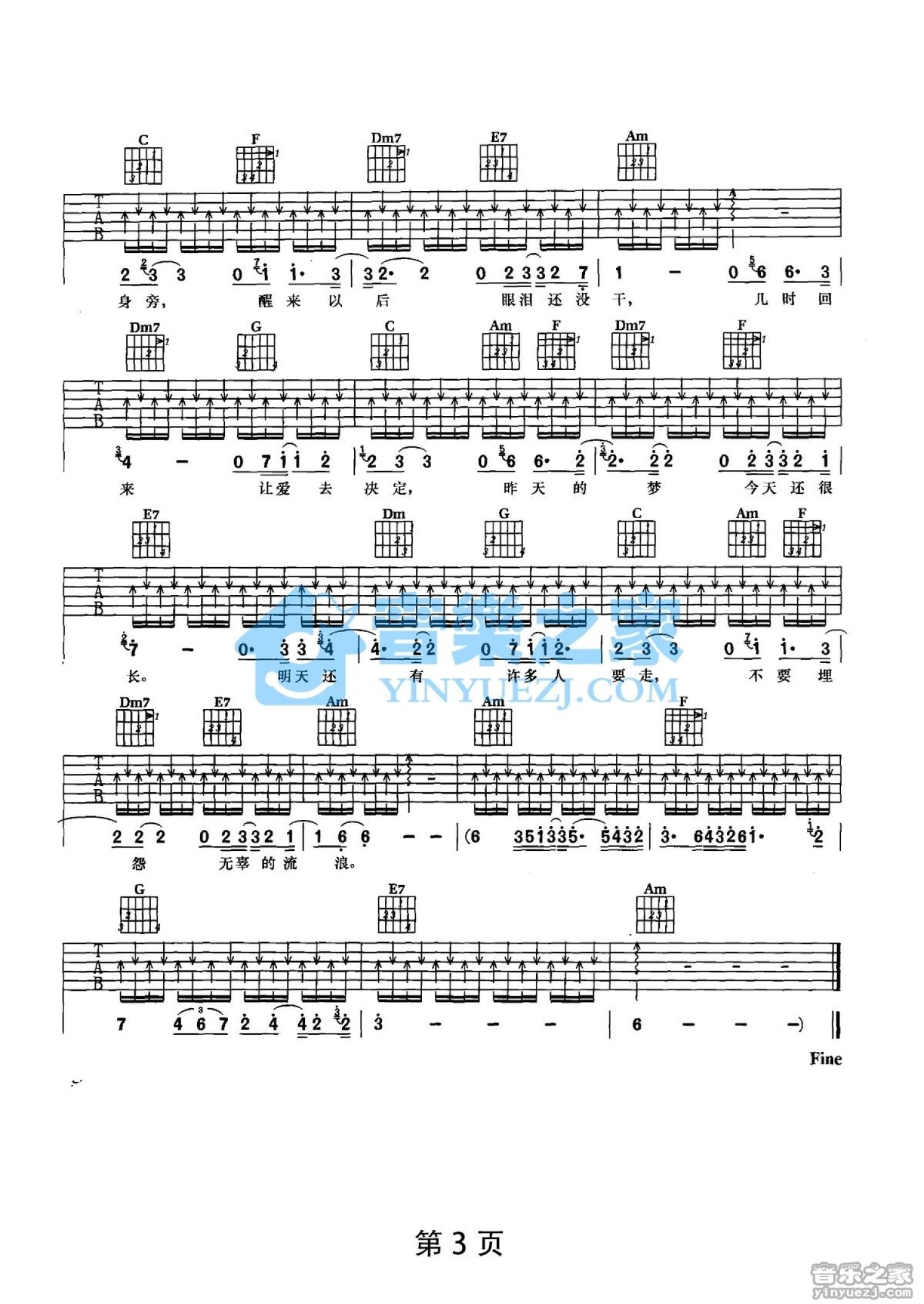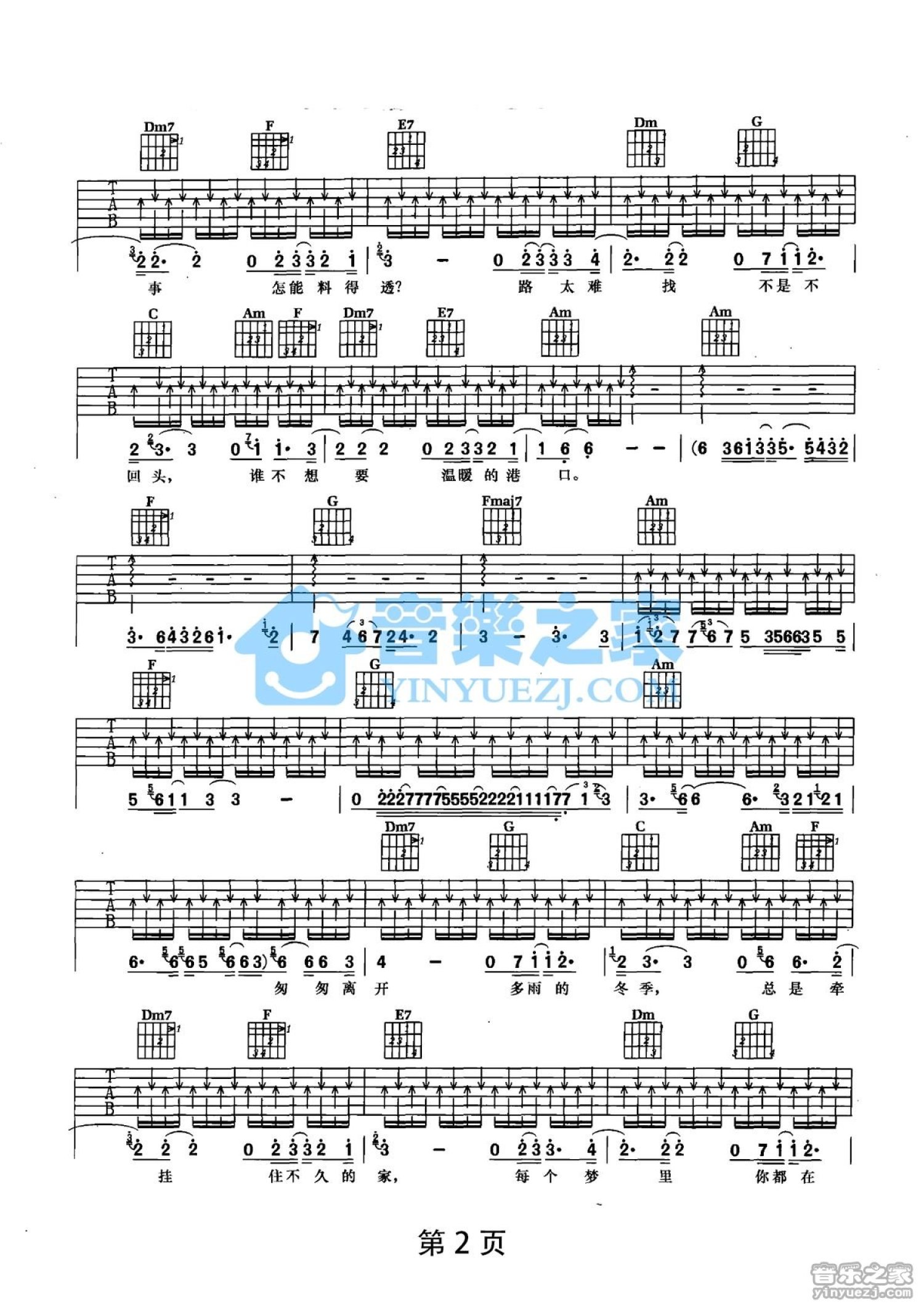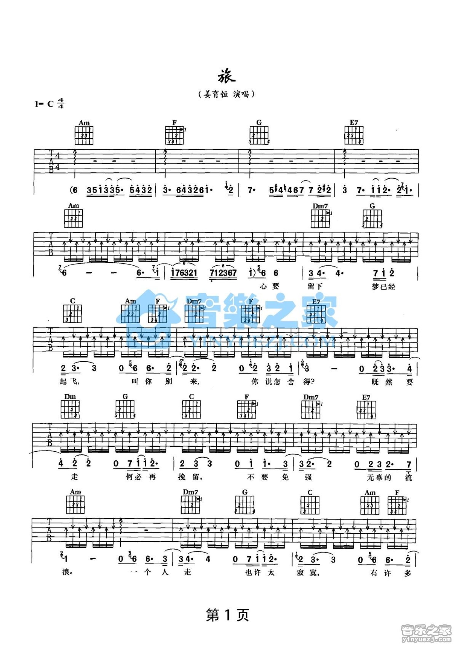 曲谱介绍: C调版 姜育恒《旅》吉他弹唱六线谱