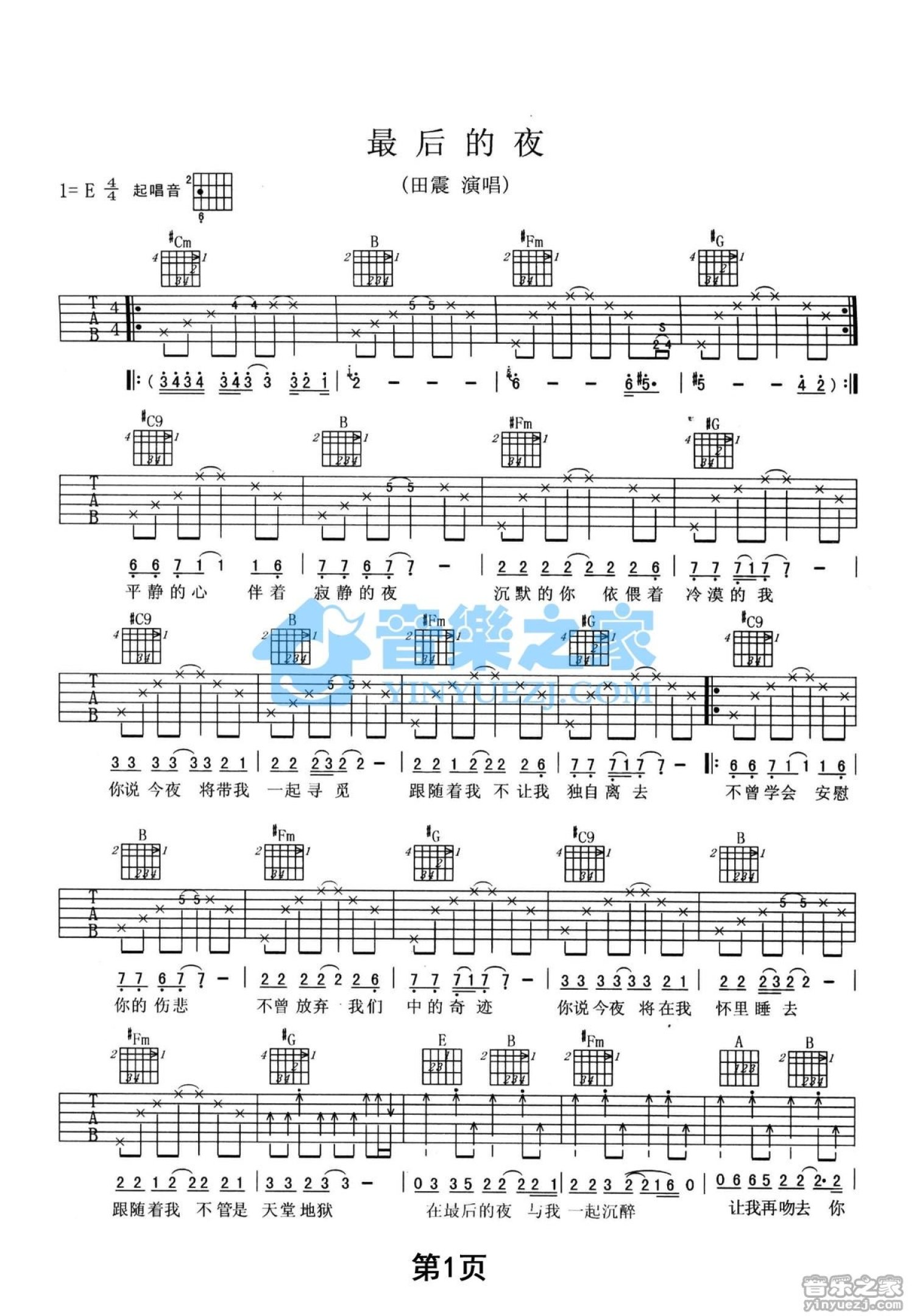 当前位置:琴谱网>吉他弹唱>最后的夜