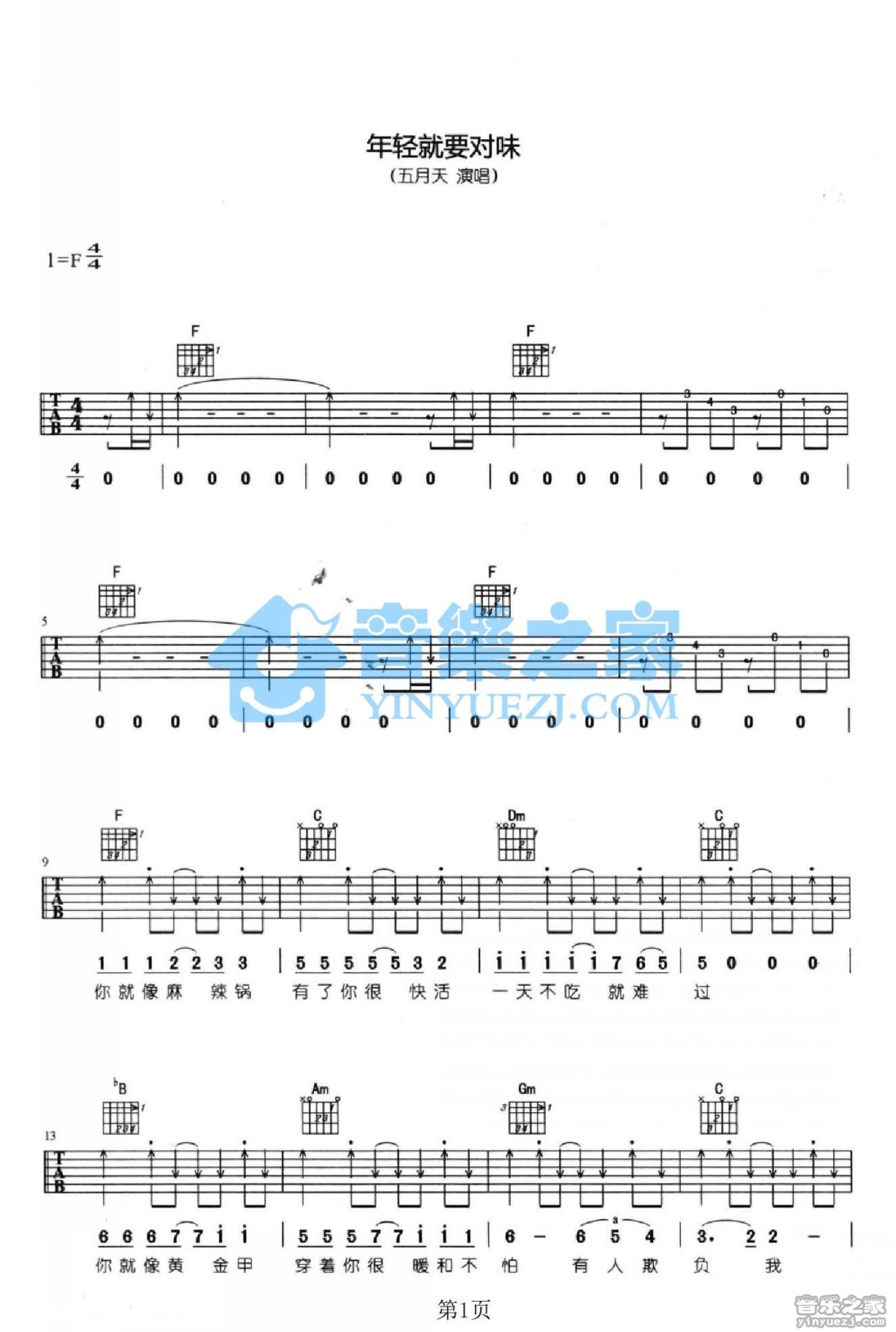 曲谱介绍: F调版五月天《年轻就要对位》吉他弹唱六线谱