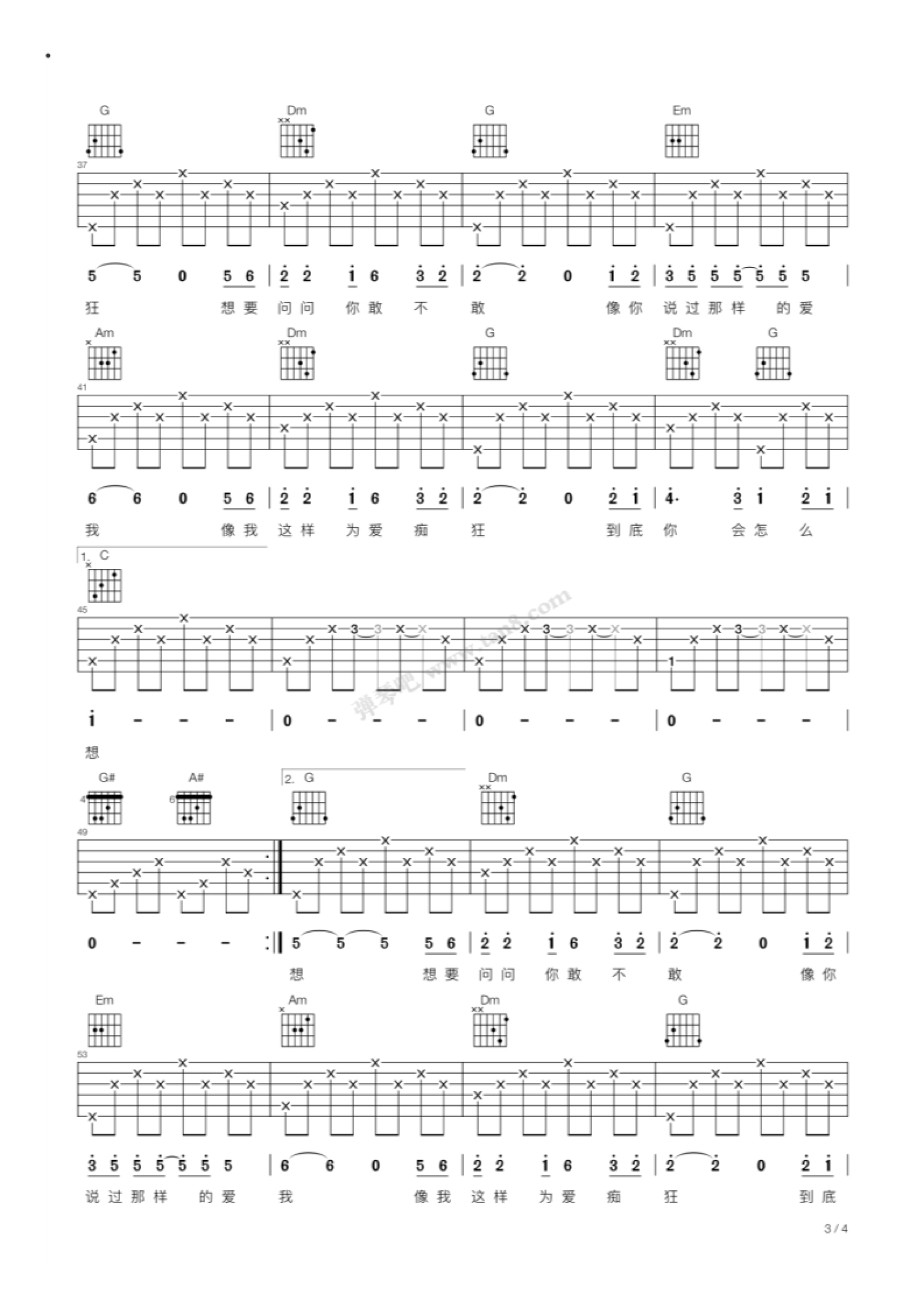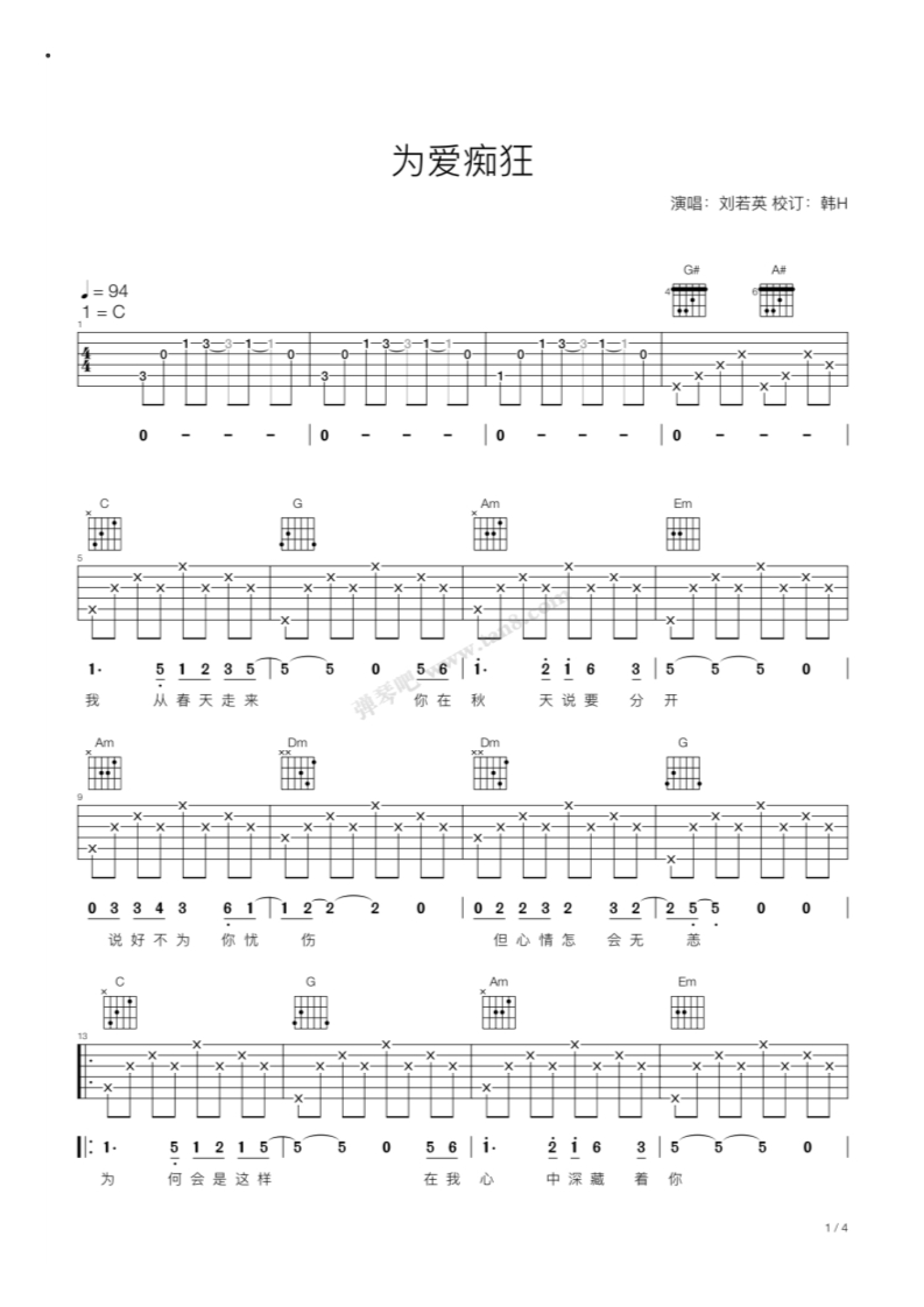 当前位置:琴谱网>吉他弹唱>为爱痴狂
