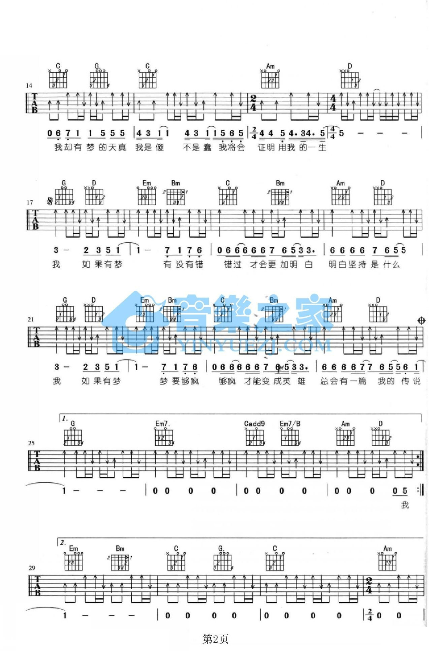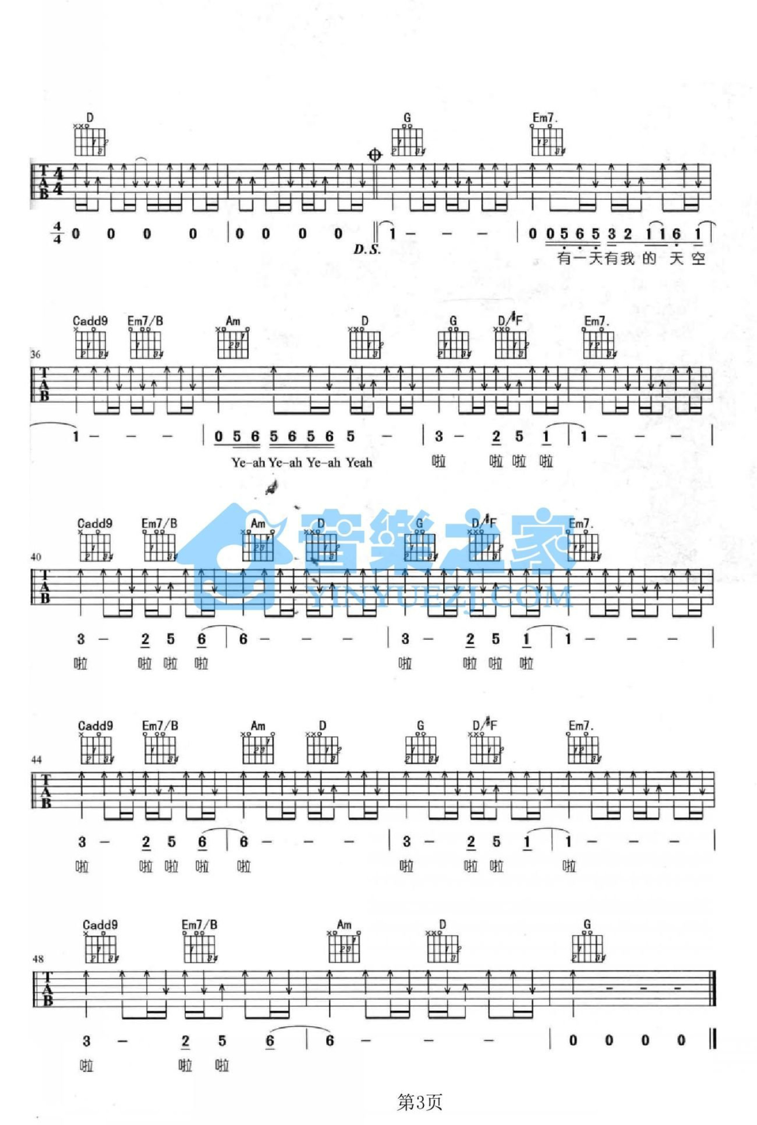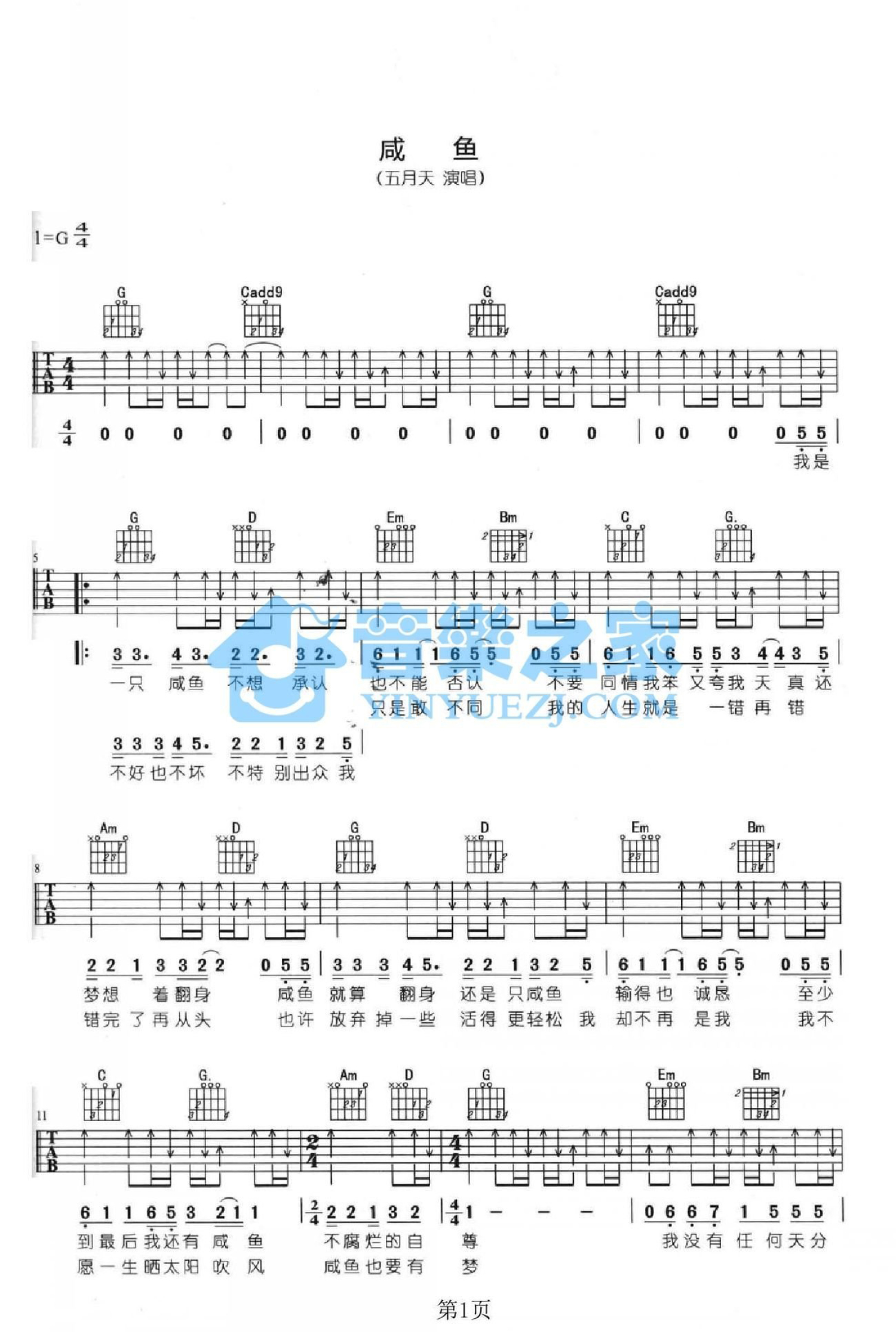 曲谱介绍: G调版 五月天《咸鱼》吉他弹唱六线谱